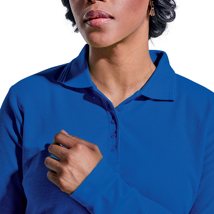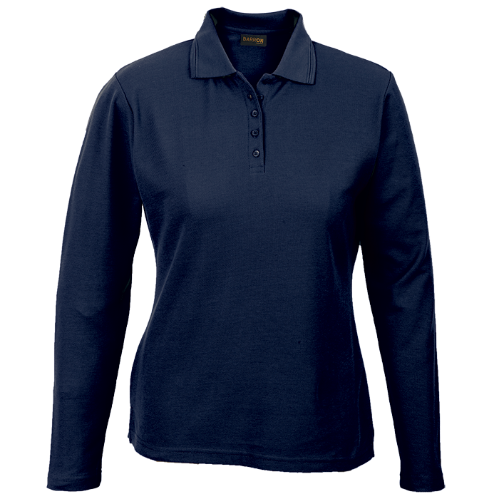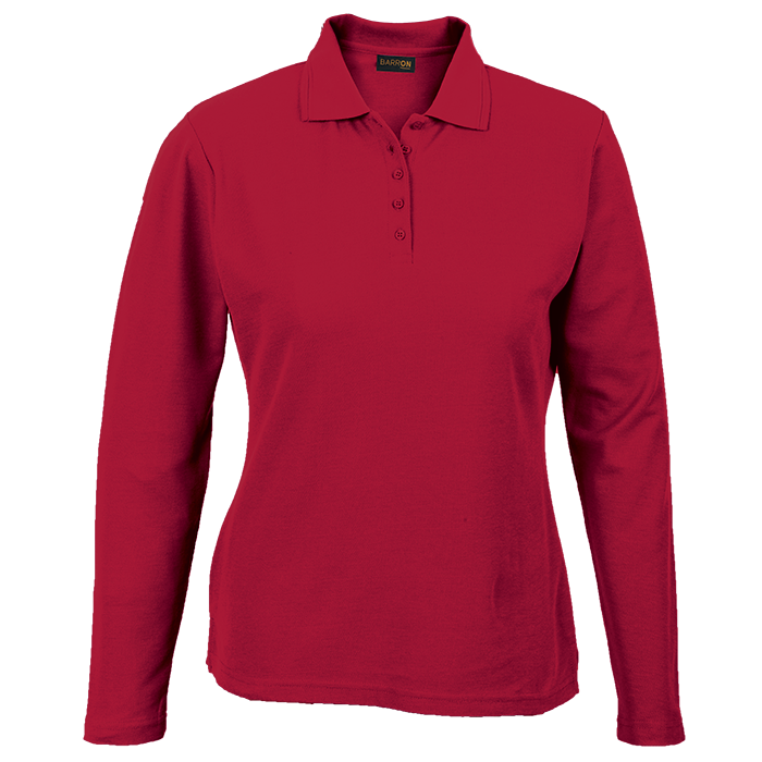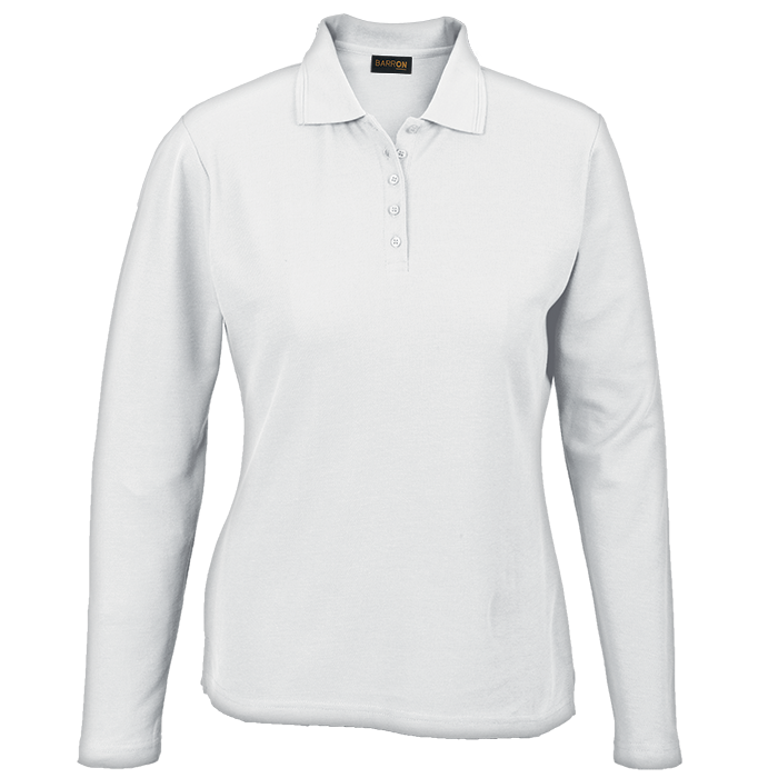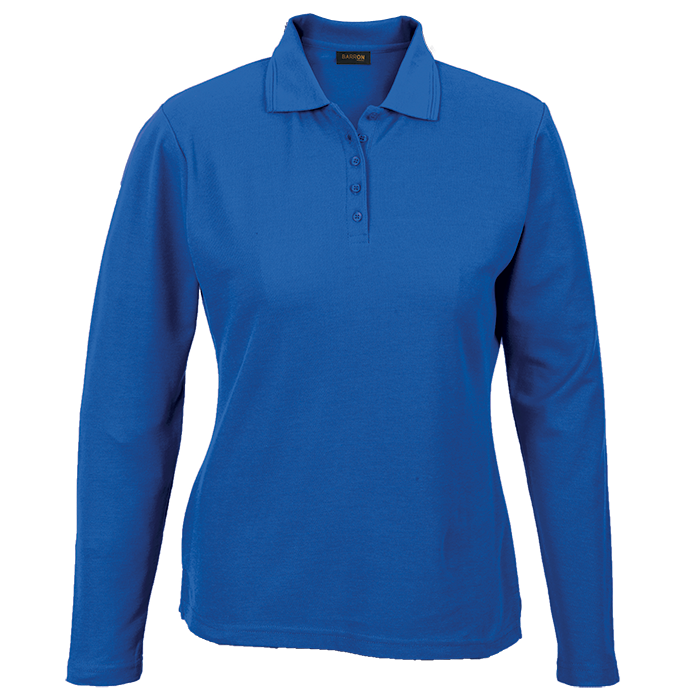 175g Pique Knit Long Sleeve Golfer Ladies Step up your game with Barron's 175g Pique Knit Long Sleeve Golfer! Crafted from soft, durable poly-cotton with a sleek slim fit, anti-pill finish, and stylish ridge collar. Stay comfy, look sharp, and swing with confidence—this golfer’s got your back on and off the course! • Two ridge collar detail • Double-needle finish on the hem and sleeves • Slim five button placket • Bust darts for a feminine fit • Anti-pill finish • Shaped waist for a feminine fit • 175g 65/35 Poly Cotton piqué knit • SADC • SMETA • OEKO-TEX