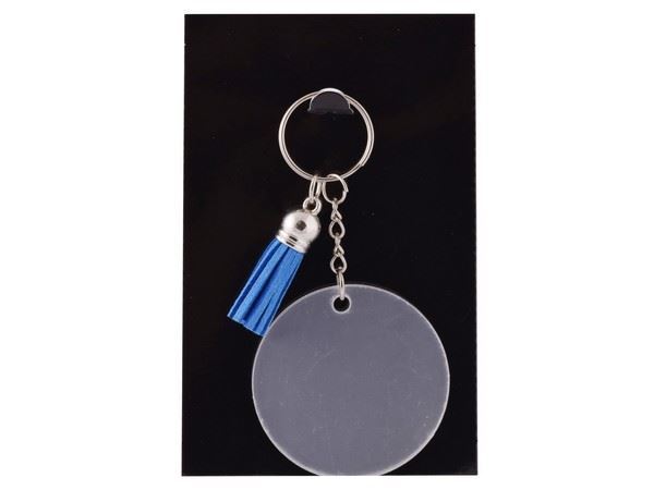 Acrylic Keychain with Tassles Cute light-weight keyring that can be used as a keyring or a bag accessory. Perspex Keyring with Blue tassels