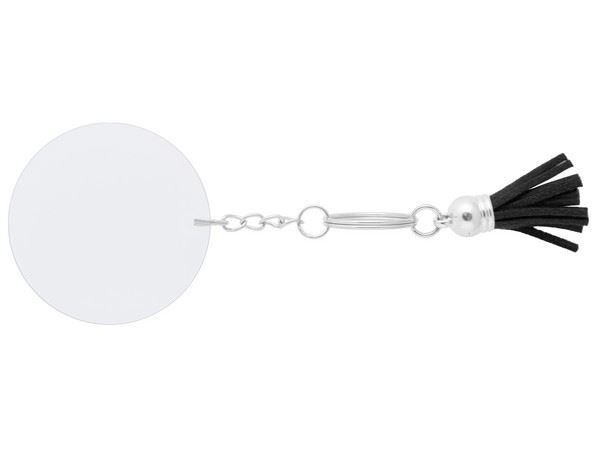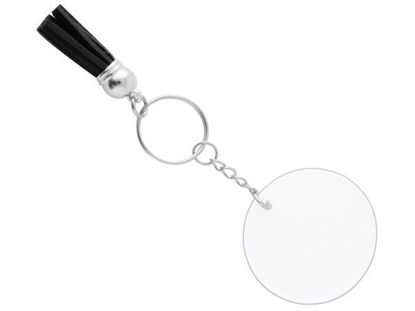 Acrylic Keychain with Tassles Cute light-weight keyring that can be used as a keyring or a bag accessory. Perspex Keyring with Black tassels