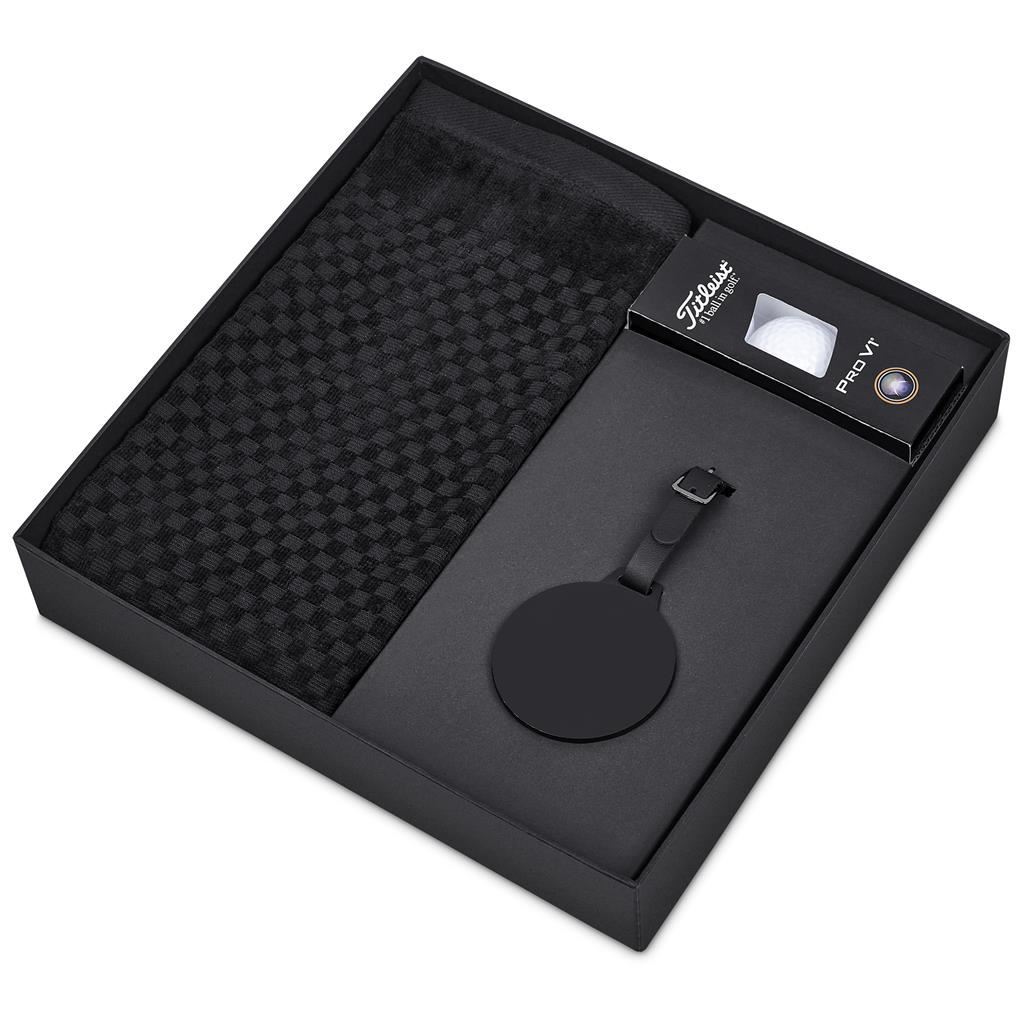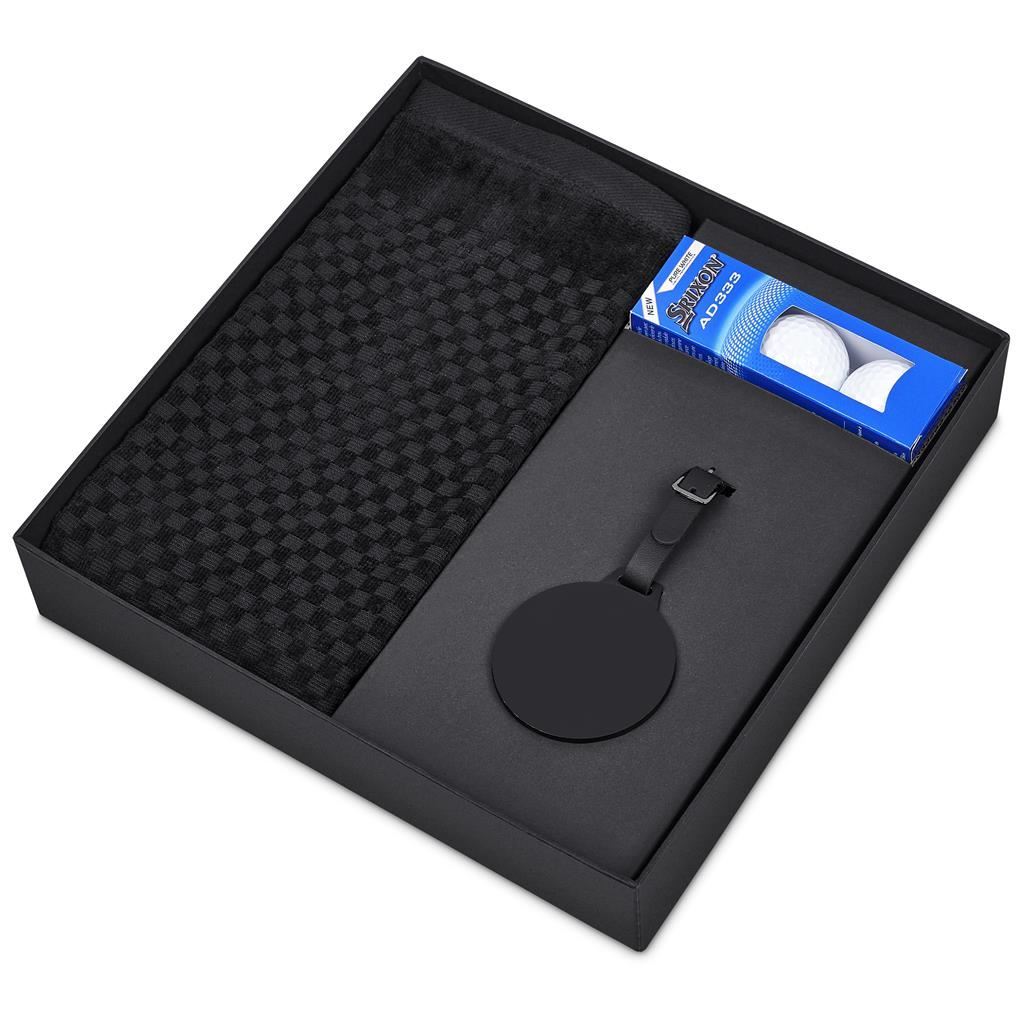 Alex Varga Blanco Golf Set This premium golf gift set is an ideal choice for corporate gifting and golf events. The set includes an Alex Varga cotton golf towel and bag tag to showcase your brand by placing your company logo on one side of the disc, presented in a two‑piece presentation box. Each set is completed with a sleeve of three golf balls, allowing the recipient to select the option best suited to their performance preferences and budget. A sophisticated and functional gift set designed to appeal to golfers of all levels while delivering excellent perceived value. The range is offered in a structured good, better, best pricing tier, providing a clear choice and flexibility: Good: Srixon Distance golf balls Better: Srixon AD333 golf balls Best: Titleist Pro V1 golf balls This gift set includes: Alex Varga Addy Medium Golf Box 28.5 ( l ) x 28.5 ( w ) x 4.5 ( h ) cm black two-piece box Alex Varga Arcadia Tri-Fold Golf Towel 56 ( l ) x 40 ( w ) cm 100% cotton 580g/m2 Alex Varga Valamora Golf Bag Tag 13 ( l ) x 7 ( d ) cm iron & zinc alloy, PU solid round disc for laser engraving, matte finish PU strap with buckle Choice of Golf Balls: Srixon distance golf balls sleeve of 3 (SF-SR-94-B) Srixon AD333 golf balls sleeve of 3 (SF-SR-95-B) Titleist ProV1 golf balls sleeve of 3 (SF-TI-96-B) Starting price listed. Ball selection effects the price