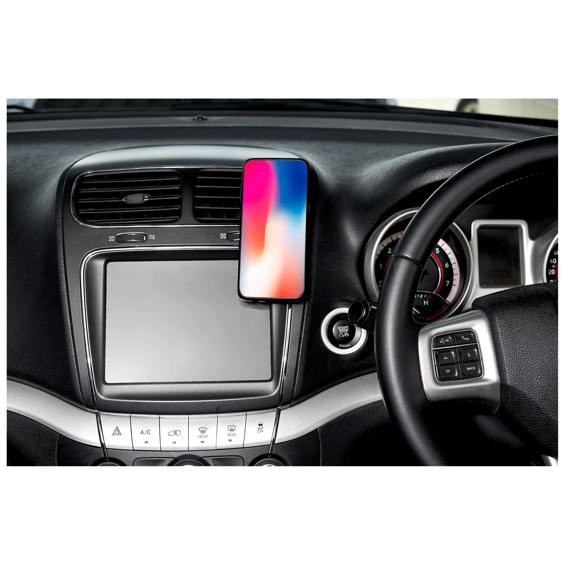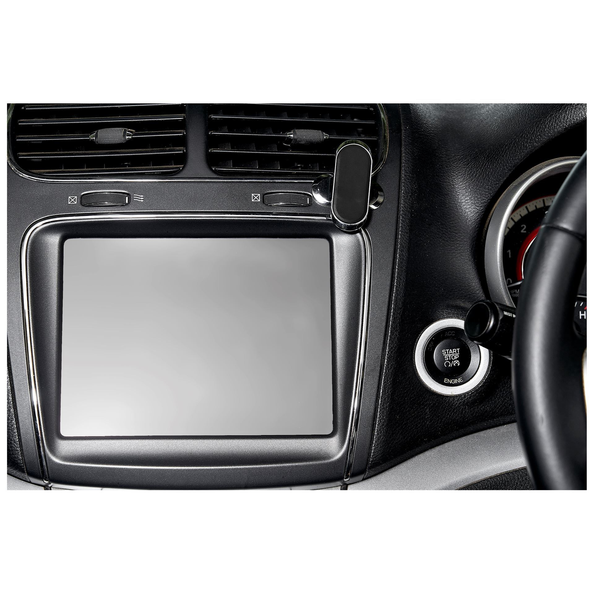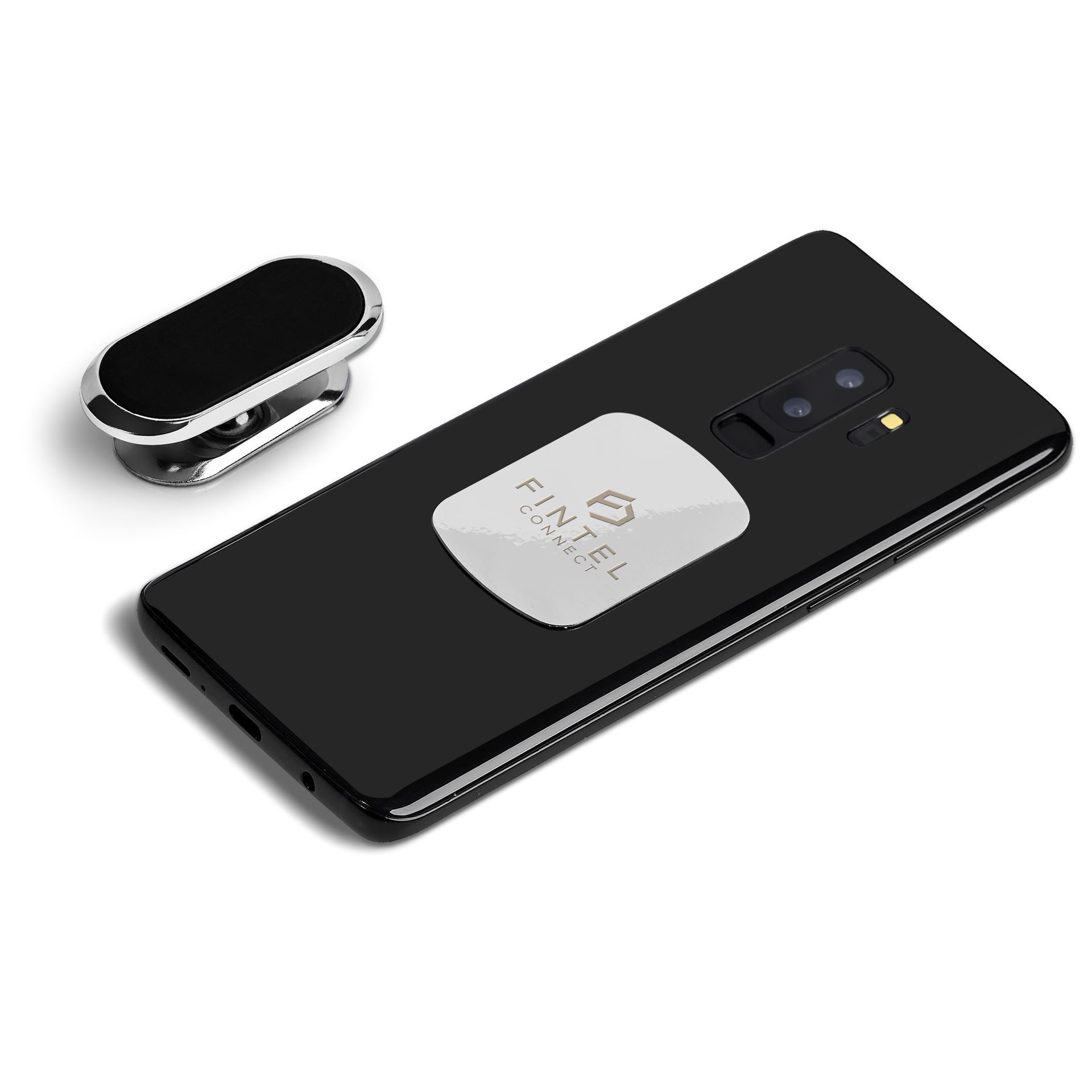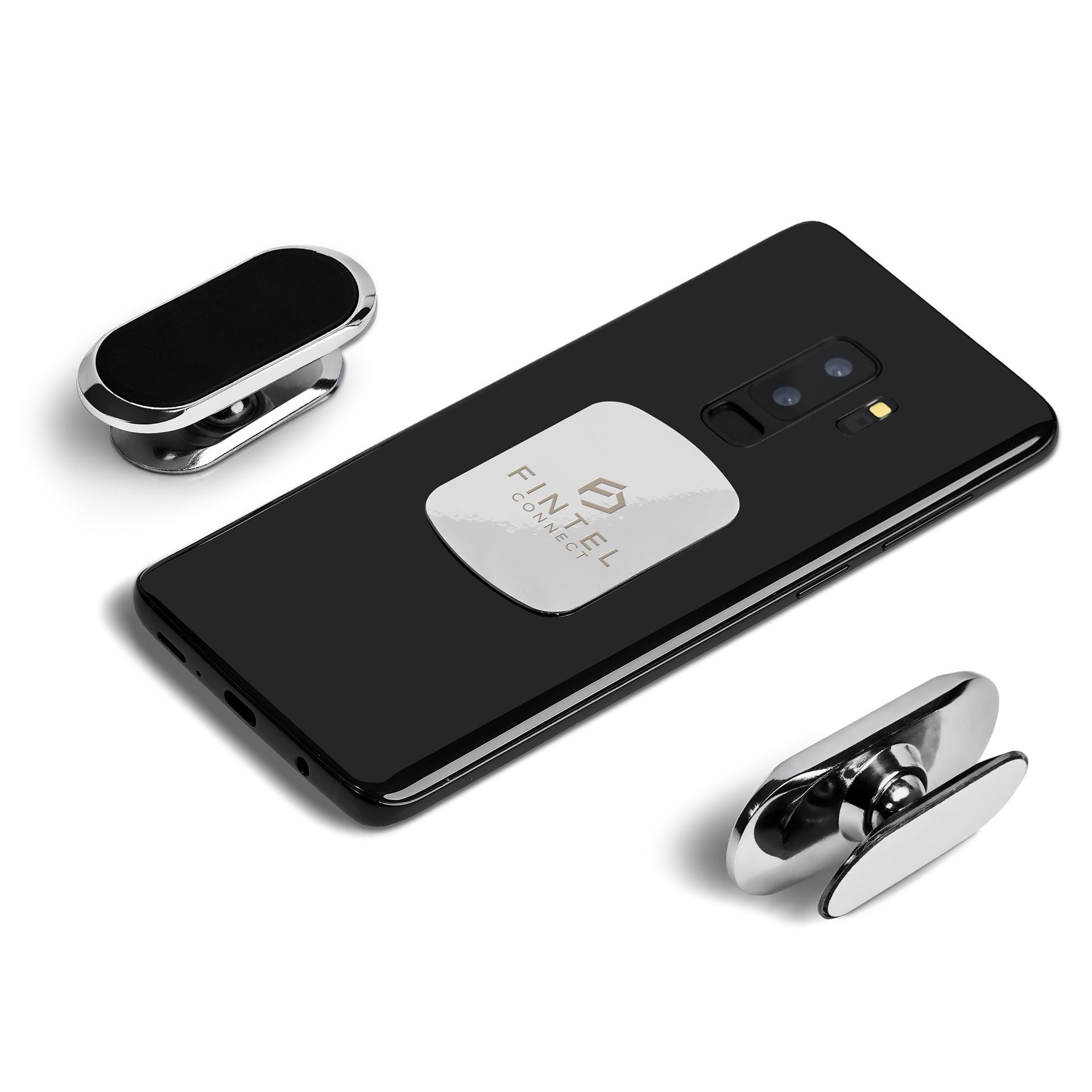 Altitude Free-Nav Car Phone Mount Keep your hands free and your phone securely in the optimal position for viewing maps, with this elegant magnetic phone mount for your car. The mount itself has a 3M tape base to stick securely onto your dashboard. It’s quite a commitment, but you’ll be glad you did it! It has a strong magnet which will secure your phone via the accompanying thin metal plate which sticks to the back of your phone or phone cover. Logo branding is offered on the metal plate. The phone mount is highly adjustable in almost any direction, enabling you to adjust the angle of your phone to your liking. 6 ( l ) x 2.4 ( w ) x 2 ( h ) cm metal, chrome, rubber & magnet adjustable Packaged in a black gift box