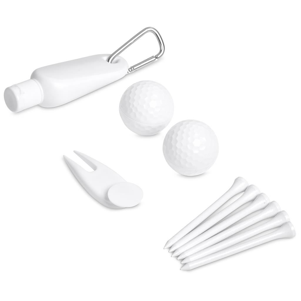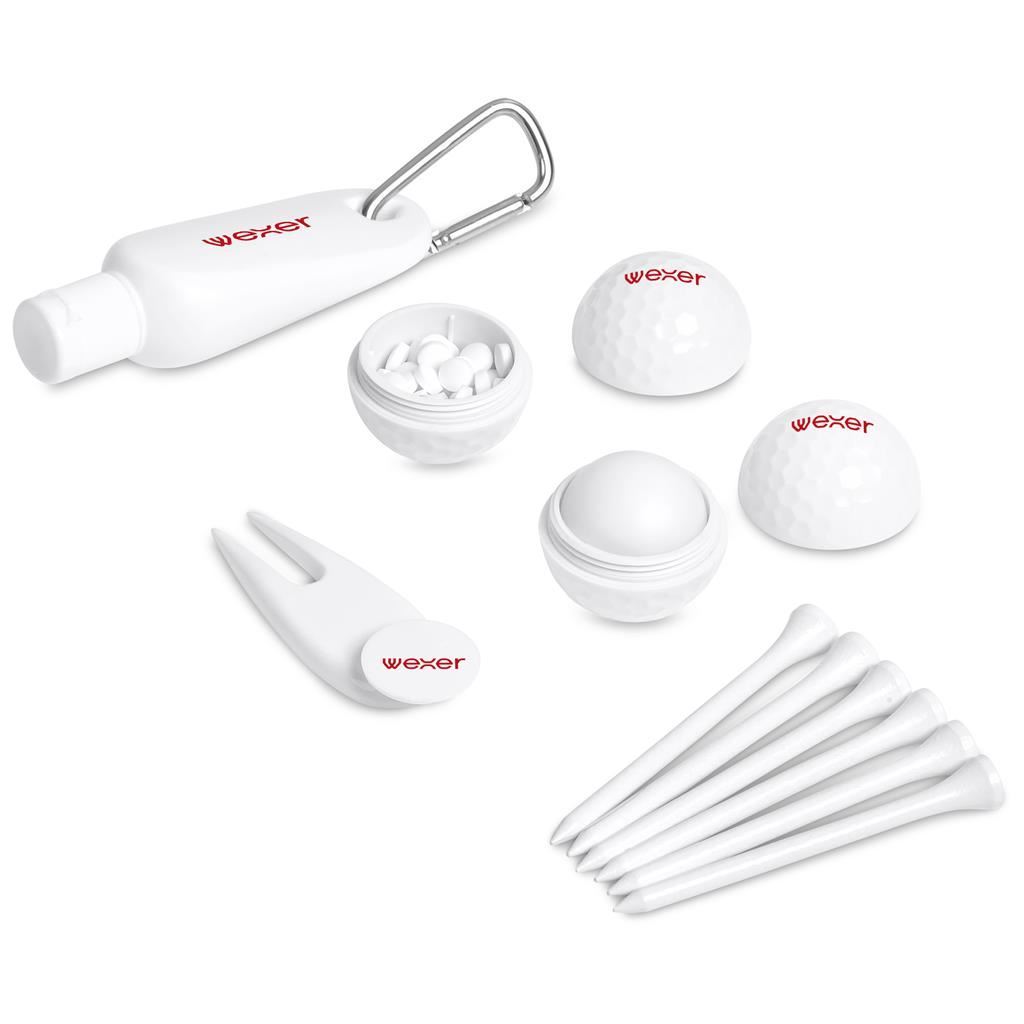 Altitude Greenside Care Golf Set Stay protected and refreshed on the course with this thoughtfully curated golf essential set. It includes SPF 30 sunblock and lip balm for reliable skin and lip protection, complemented by fresh mint candy, six golf tees, divot tool & ball marker, all neatly presented in a zipped pouch for convenient storage and easy access. This gift set includes: Altitude Protector Sunblock – 30ml 10.3 ( l ) x 3.8 (w ) x 3 ( h ) bottle: PE 30ml SPF30 Altitude Staten Universal Pouch 17 ( l ) x 12.5 ( w ) cm ripstop material front zip pocket for extra storage Altitude White Golf Tees 6 Pack wooden Altitude Turf Divot Tool & Ball Marker 7 ( l ) x 2.5 ( w ) x 0.5 ( h ) cm ABS Altitude Birdie Golf Ball SPF 30 Lip Balm 3.5 ( d ) cm ABS 12g vanilla scented, SPF 30 Altitude Tee Fresh Golf Ball Mints 3.5 ( d ) cm ABS peppermint flavour