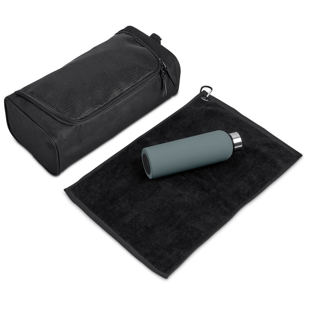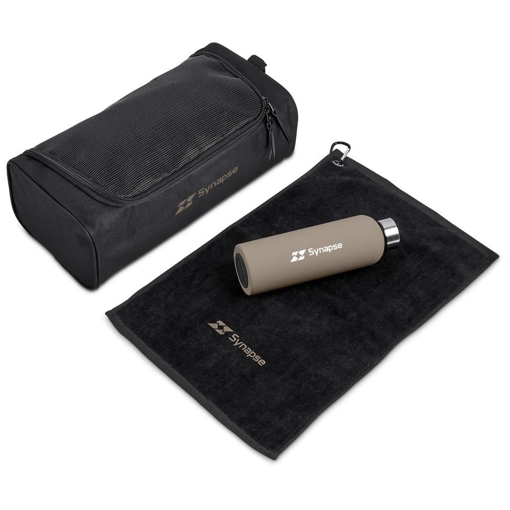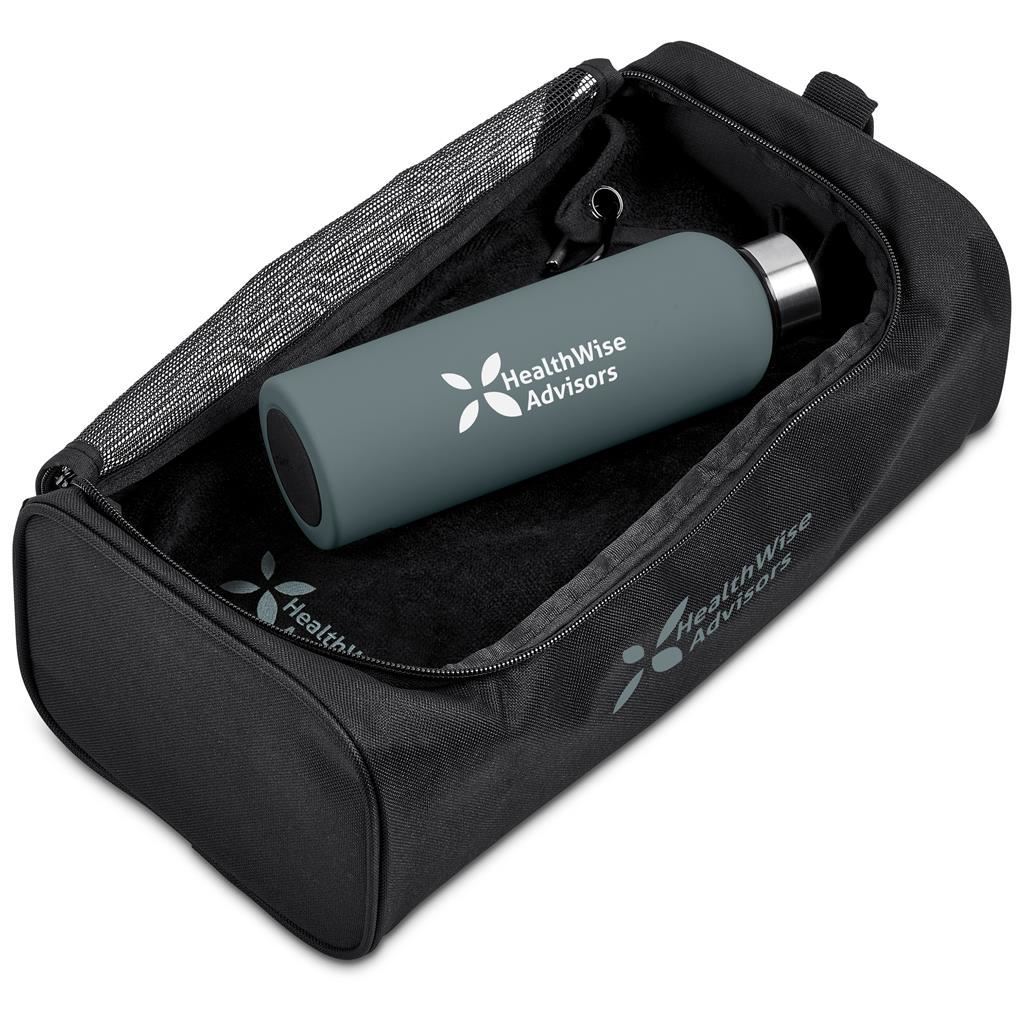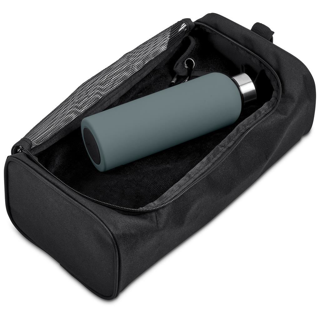 Altitude Play Ready Golf Set The golf shoe bag is designed to keep footwear neatly stored and separate from other equipment, ensuring cleanliness and organisation. The set includes a soft, highly absorbent golf towel, ideal for cleaning clubs, balls, and hands throughout the round. The water bottle provides a convenient hydration solution during play. Together, this golf set offers a cohesive and practical solution for golfers of all levels and is well-suited as a premium gift, corporate giveaway, or retail bundle. This gift set includes: Altitude Turnberry Golf Shoe Bag 19 ( l ) x 12.5 ( w ) x 37 ( h ) cm 600D vented front panel Altitude Fairway Golf Towel 50 ( l ) x 30 ( w ) cm 100% cotton 400g/m2 terry on one side, velour on the reverse side metal carabiner to attach a towel to a golf bag Serendipio Benson SS Water Bottle – 720ml 22 ( h ) x 7 ( d ) cm stainless steel 720ml single-wall bottle watertight screw-on lid rubberised finish bottle with shiny plain stainless steel lid