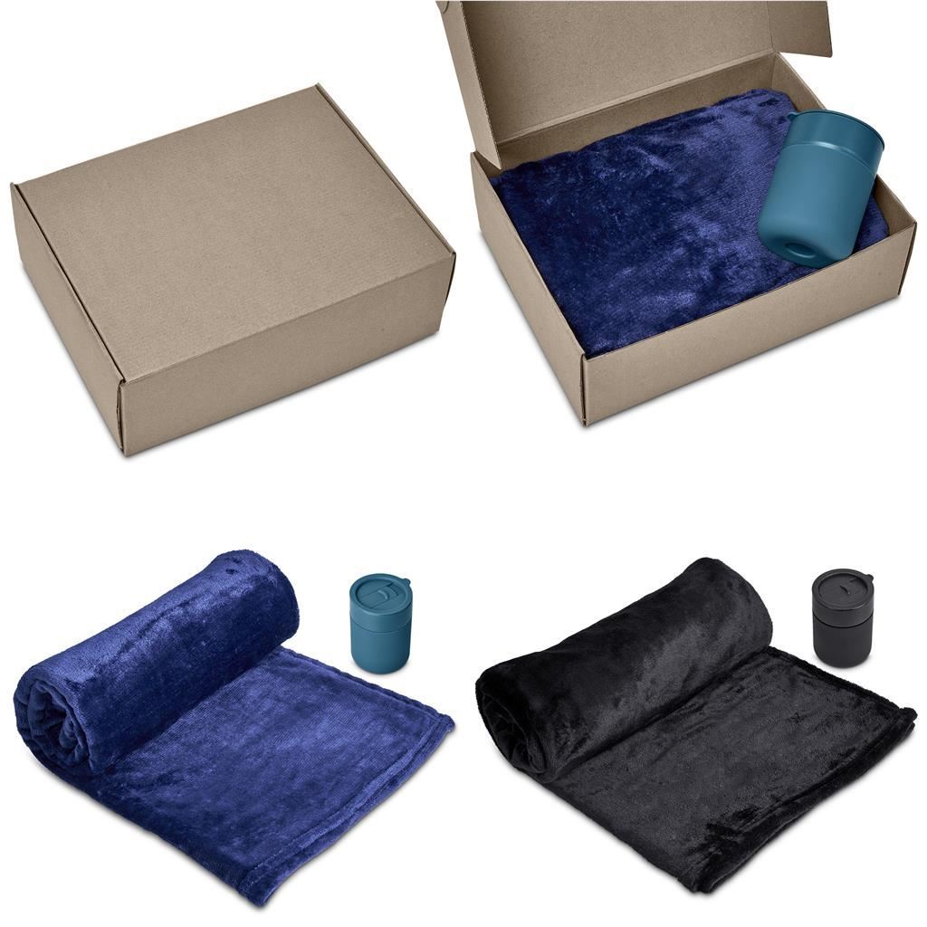Altitude Snowscape Gift Set This cosy and practical gift set is presented in a natural kraft box. The set features a warm fleece blanket, perfect for relaxing at home or keeping snug on cold days, paired with a ceramic coffee tumbler fitted with a silicone sleeve for comfortable handling and added protection from hot drinks. This gift set includes: Serendipio Huron Fleece Blanket 153 ( l ) x 127 ( w ) cm 220gsm fleece single-layer lustre sheen finish soft plush feel Serendipio Pimlico Ceramic Coffee Tumbler 10.5 ( h ) cm ceramic, PP & silicone 300ml insulating and protective silicone sleeve Altitude Bosley Gift Box A 30 ( l ) x 23 ( w ) x 10 ( h ) cm 1.2mm E flute corrugated board natural colour inside and out foldable cardboard gift box