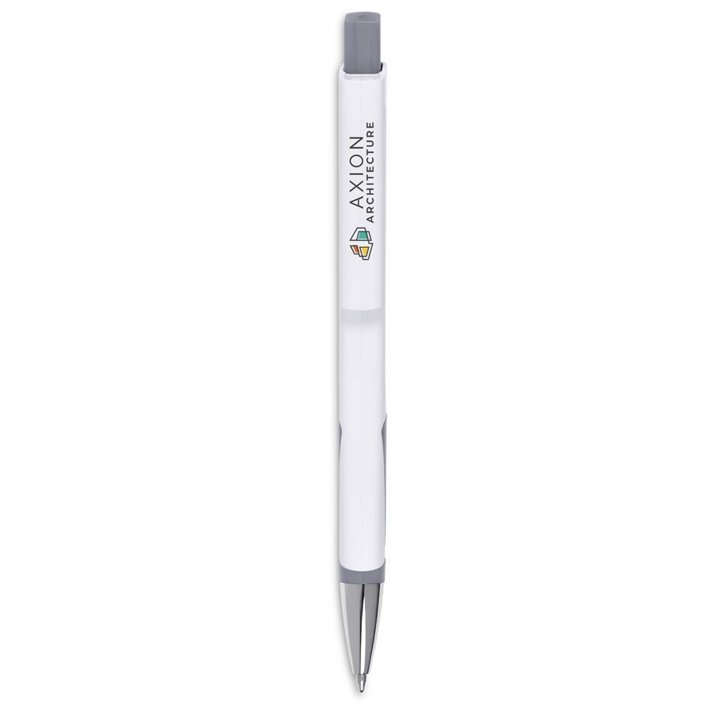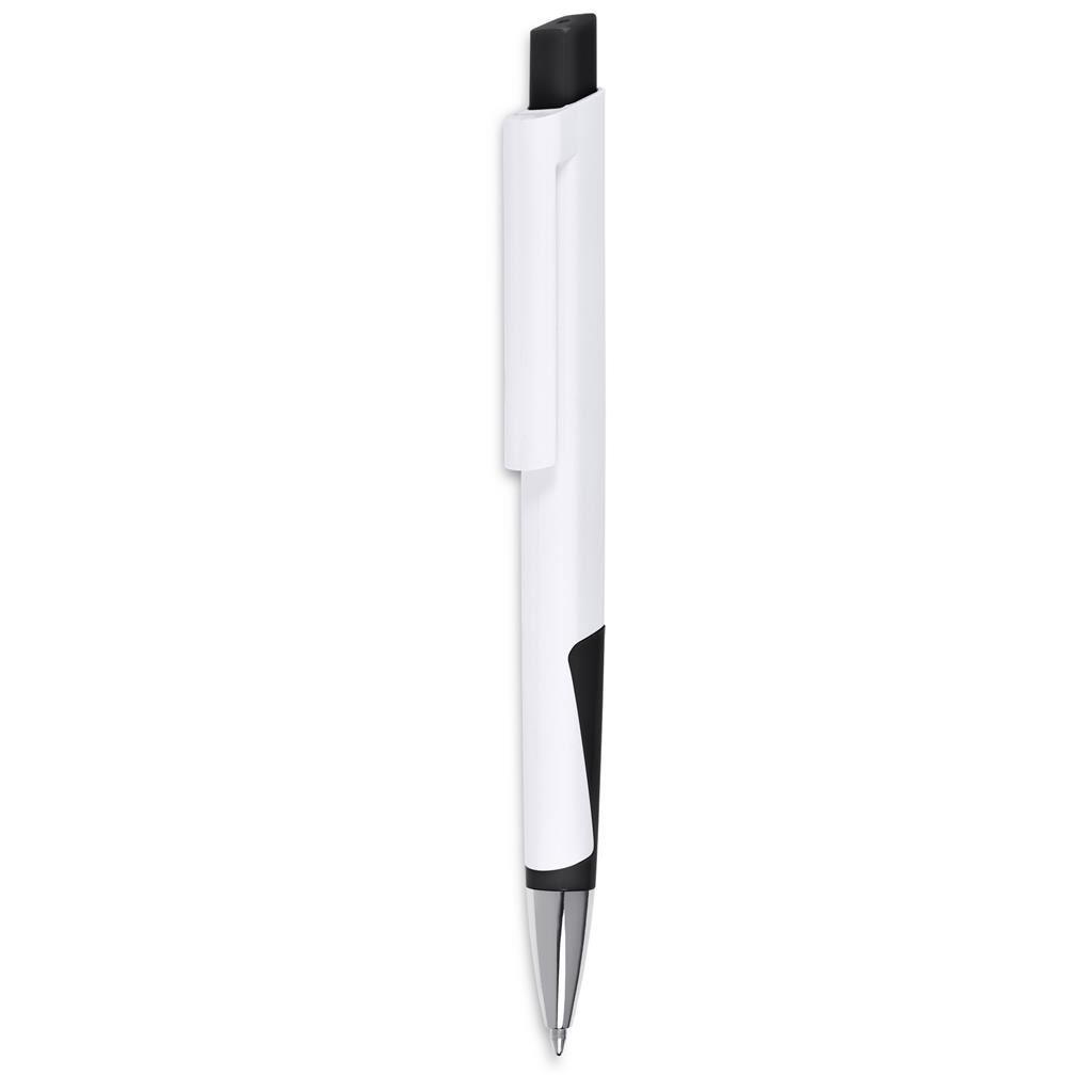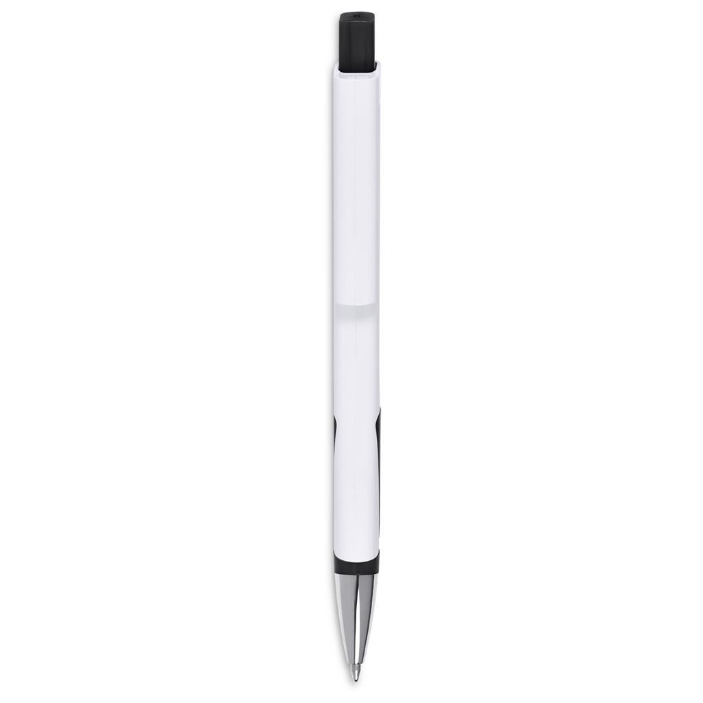 Altitude Spectra Ball Pen Showcase your brand with maximum impact using this modern promotional pen. Designed with flat sides and a matching flat clip, it offers generous space for full-colour digital printing - for vibrant logos, detailed designs, or bold messages that truly stand out. The pen writes smoothly and comfortably, making it a practical everyday essential while also serving as a high-visibility branding tool. Ideal for events, corporate giveaways, campaigns, and promotions where a strong visual presence matters. ABS plastic & chrome black German ink minimum 1,500 Metres writing distance features flat surfaces for full-colour digital branding of a logo or message bulk packed