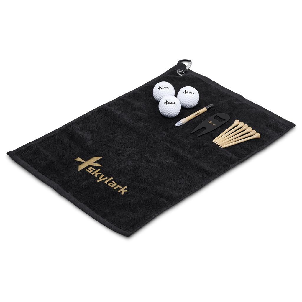 Altitude Streamline Golf Set - AD333 This golf gift set includes a cotton golf towel, divot tool, golf pencil, and six golf tees, all neatly presented in a two‑piece black presentation box. Each set is completed with a sleeve of three golf balls, allowing you to select the option that best suits your performance and budget requirements. The range is available in three tiers, offering a clear good, better, and best pricing structure: Good: Srixon Distance golf balls Better: Srixon AD333 golf balls Best: Titleist Pro V1 golf balls An ideal gift set for corporate golf days or golfing events. This gift set includes: Gift Box - Bandit Gift Box 16 ( l ) x 16 ( w ) x 6 ( h ) cm black two-piece box Altitude Fairway Cotton Golf Towel 50 ( l ) x 30 ( w ) cm 100% cotton terry on one side and velour on the other side metal carabiner Altitude Pitch Divot Tool & Bottle Opener 10 ( l ) x 3.5 ( w ) cm stainless steel round PU tag, with five slots for tees Altitude Natural Golf Tees 6 Pack 70 ( l ) mm Wood Okiyo Iguru Bamboo Everlasting Golf Pencil 10 ( l ) cm metallic alloy, bamboo & synthetic rubber an infinity pencil never needs to be sharpened with protective cap Choice of Golf Balls: Srixon distance golf balls sleeve of 3 (SF-SR-90-B) Srixon AD333 golf balls sleeve of 3 (SF-SR-91-B) Titleist ProV1 golf balls sleeve of 3 (SF-TI-92-B) Starting price listed. Ball choice effects the price.