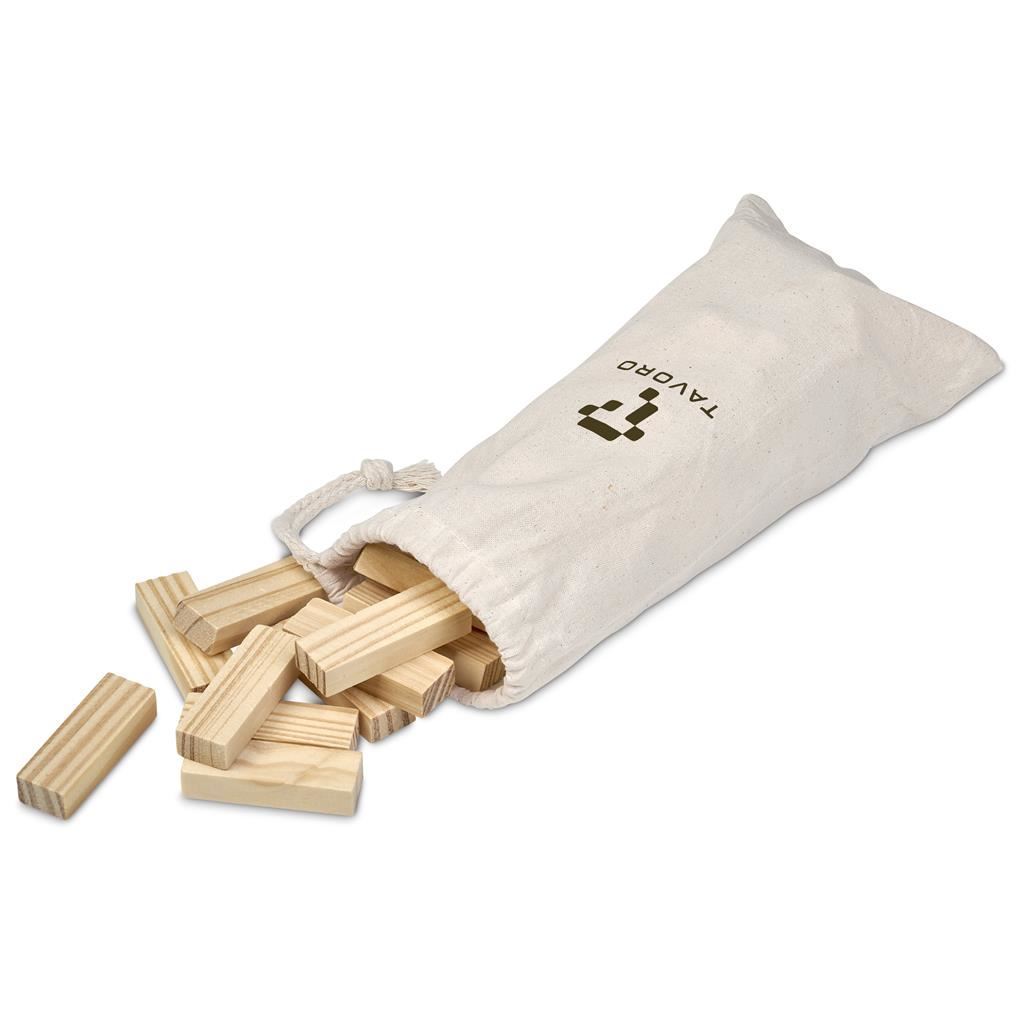 Altitude Tumble Wooden Block Tower Game A classic game of balance, skill, and strategy. Build the tower, then take turns removing and stacking blocks - just don’t be the one to make it fall. Supplied in a natural cotton drawstring pouch, this set offers an excellent branding opportunity with your logo, making it a fun and memorable promotional gift. Ideal for team building, events, and casual play, it encourages interaction, focus, and a bit of competitive spirit. 7 ( l ) x 7 ( w ) x 25 ( h ) cm wood & cotton 45 wooden blocks includes instruction manual the set of blocks is shrink-wrapped and packaged in a cotton drawstring pouch