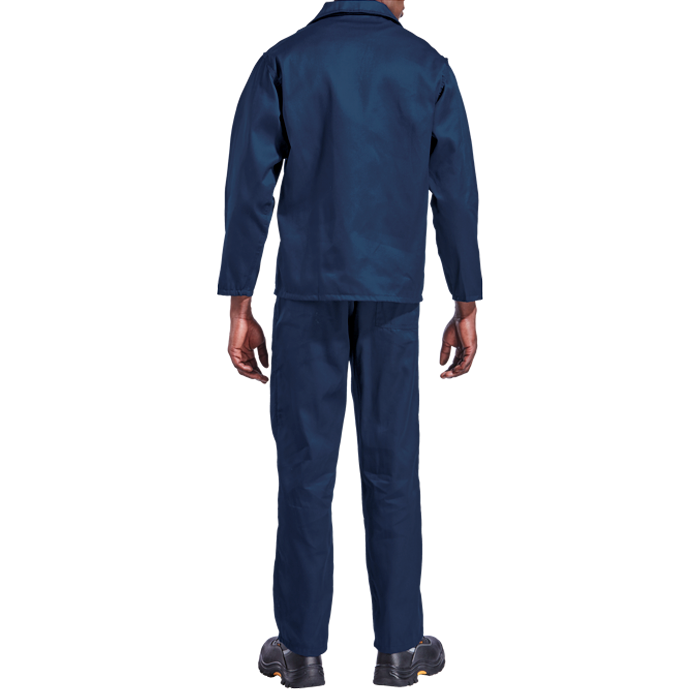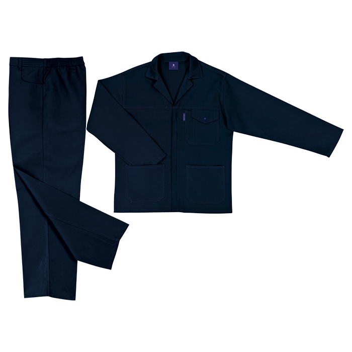 Jacket features include a concealed YKK zip and twin-needle top-stitched mitred chest pocket with V-flap and pen division. For added durability triple-stitching has been added to the armholes and underarm. Pants have 1/2 elasticated waistband, triple top-stitched front and back rise and double top-stitched side pockets and back pocket.