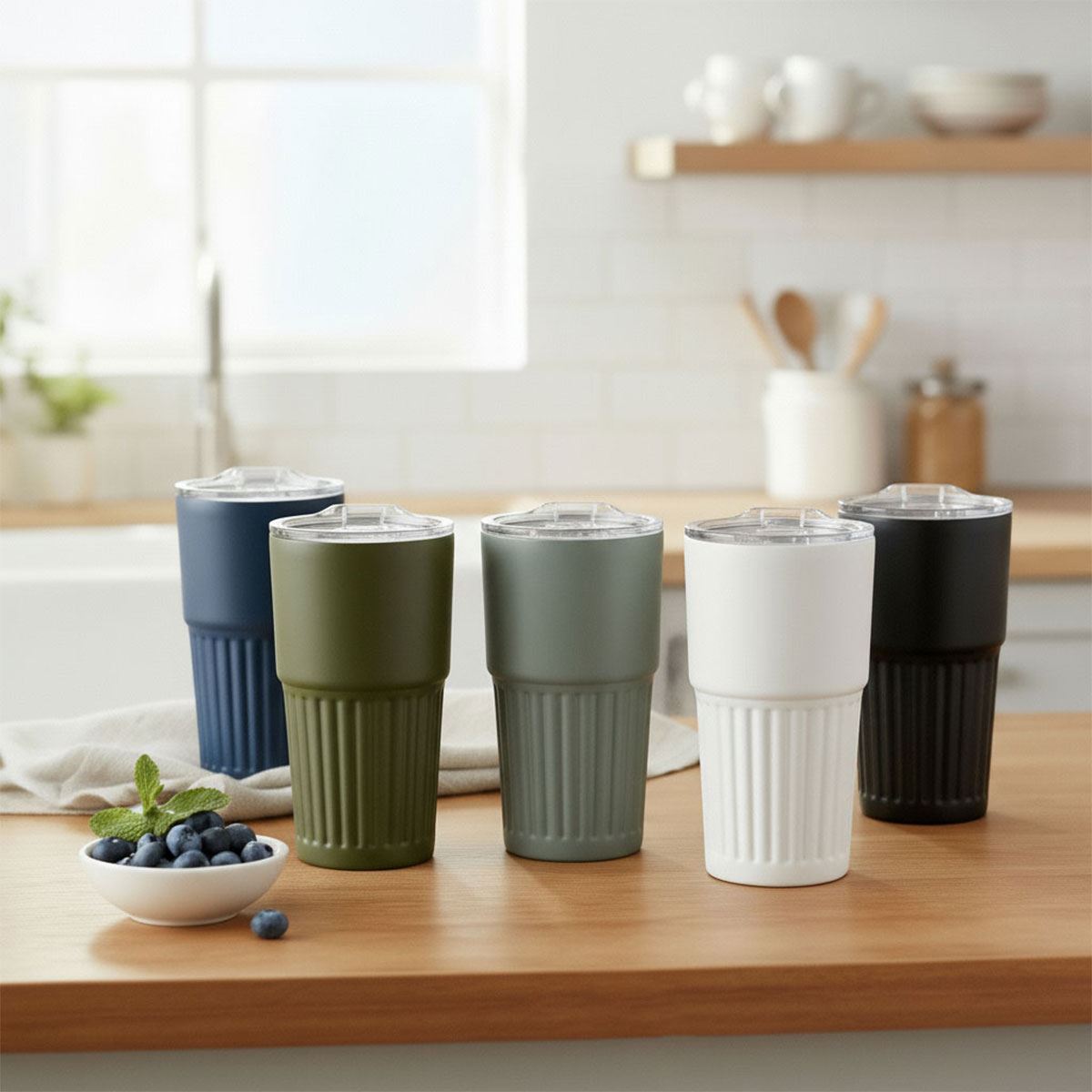 Callaway Stainless Steel Tumbler Code: TUM25703 500ml thermal tumbler crafted from durable stainless steel Double-wall insulation for optimal temperature retention Sleek matte finish for a modern and refined look Non-slip base ensures stability on various surfaces Textured base design enhances grip and adds a stylish touch Transparent, pressure-sealed push-on lid with slide closure for spill-resistant convenience Elegantly packaged in a natural kraft gift box — perfect for gifting or display Not dishwasher or microwave safe Stainless Steel: A durable, corrosion-resistant material that ensures longevity and effective temperature control Double-Wall Insulation: Maintains beverage temperature for longer periods while preventing external condensation Matte Finish: A smooth, modern surface that resists fingerprints and adds a premium aesthetic Stainless Steel 304 & 201, Silicone