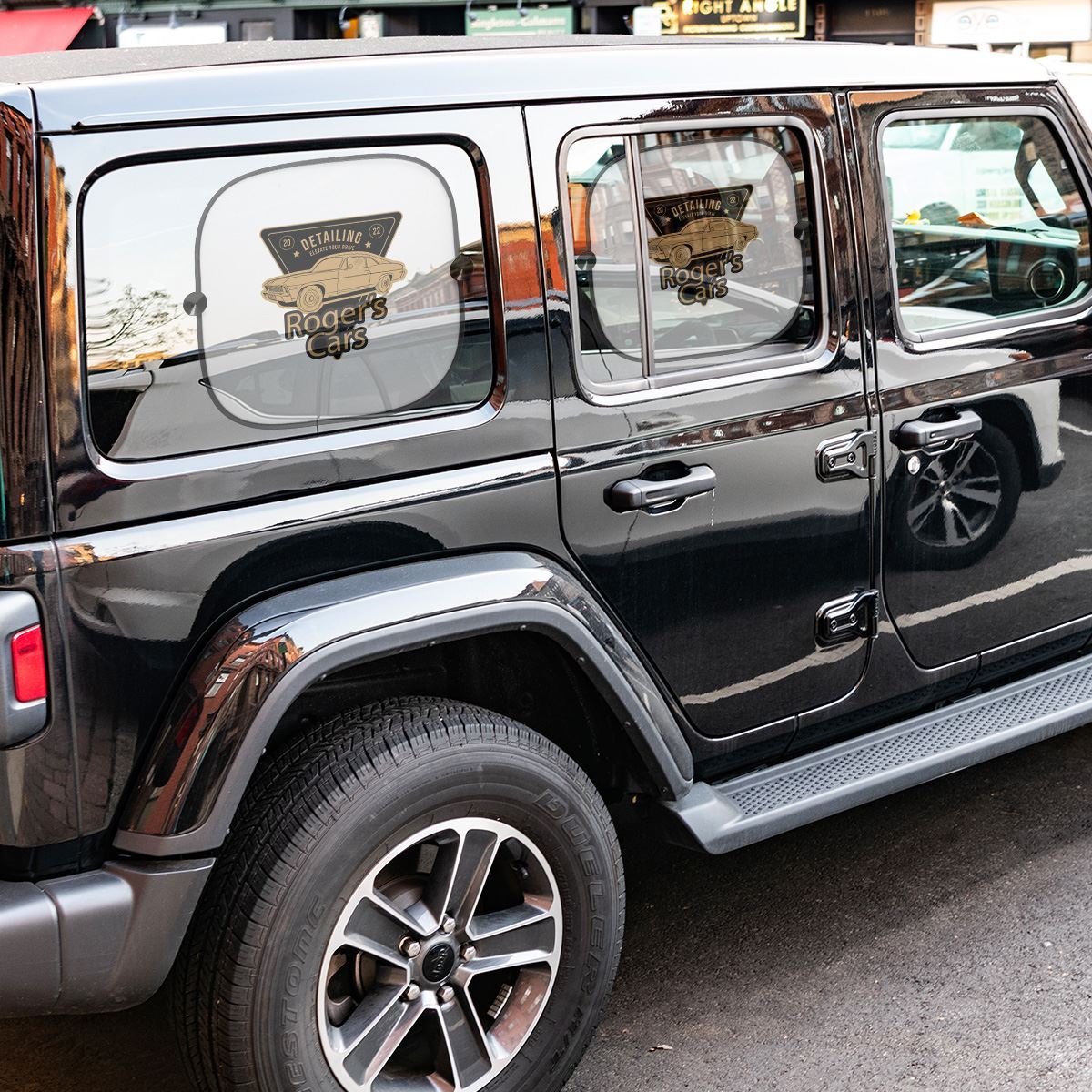Car Window Shade Set Our Car Window Shade Set is an indispensable accessory, offering a multitude of advantages for both drivers and passengers alike. Manufactured from lightweight and pliable materials like mesh and polyester, the main function is to absorb UV rays, fostering a pleasant and cozy atmosphere within the vehicle and enhancing comfort and enjoyment for all occupants. Product Material: Polyester Product Size cm:44 (L) x 37 (H) Stock item, no MOQ