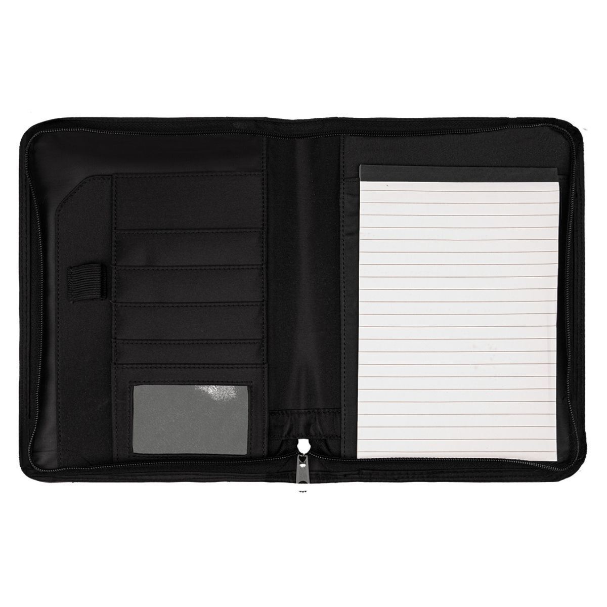 The Carmel A5 PU Folder is a fusion of style and utility. Crafted from premium PU this folder offers a single zip to safeguard your items. On one side, you'll find convenient storage compartments as well as a pen loop, while the other side hosts a 20-page notepad.