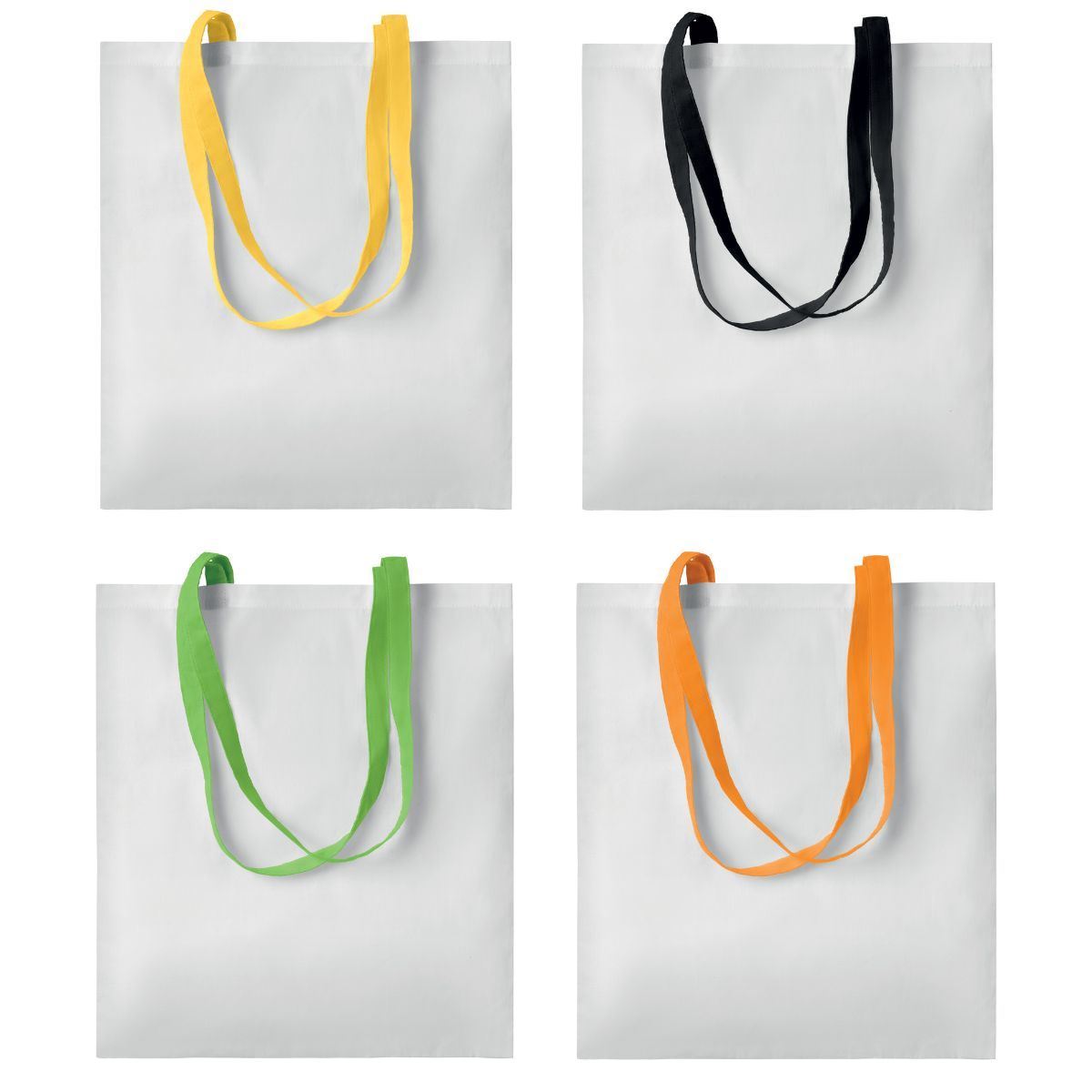 The Colour Handle Shopper is manufactured using 105gsm Polycotton material. This bag is white in colour which means a full colour sublimation print can be offered, edge to edge. The bag also offers 2 colourful, strong an durable carry handles. There's a large main compartment to ensure maximum storage space.