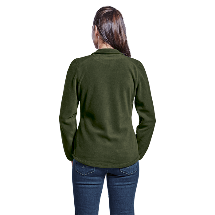 Hybrid Fleece Ladies Funnel neck collar Set-in sleeves Cover-seam stitching on shoulder panels Inseam pockets Elasticated sleeve hem Double top-stitched hems 280g 100% Anti-pill Polyester micro fleece Nylon zip with metal zip puller SADC SMETA OEKO-TEX