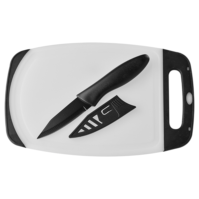 Kitchen Knife With Cutting Board Set Slice, dice, and chop like a pro with the Barron Kitchen Knife & Cutting Board Set! Featuring a sharp 8.5cm blade and a comfy 11cm handle, this compact duo makes meal prep a breeze. Stylish, sturdy, and perfect for all-year kitchen adventures—your culinary sidekick awaits! • Material:PP Cover • Size: 19.5cm length • 11cm Handle • 8.5cm Blade • 1.2mm Thickness • 3.5 Kitchen Knife