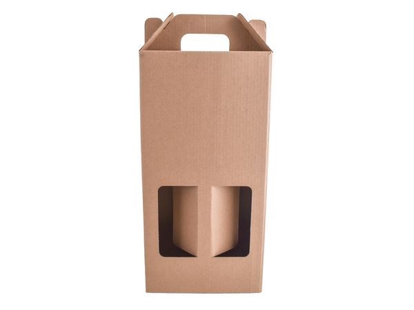 Kraft Double 750ml Wine Bottle Gift Box The Kraft Box features two front cut-out windows to display 2 x 750ml Wine Bottles and a built-in carry handle, providing a clean, professional look with minimal environmental impact. The foldable design makes storage and transport easy, and each box includes printed assembly instructions for quick setup. Colour(s):Brown Material:Kraft Paper Size:16 (h) x 32 (h) x 7 (d) - open / 23.5 (w) x 46.5 (h) x 0.3 (d) - closed