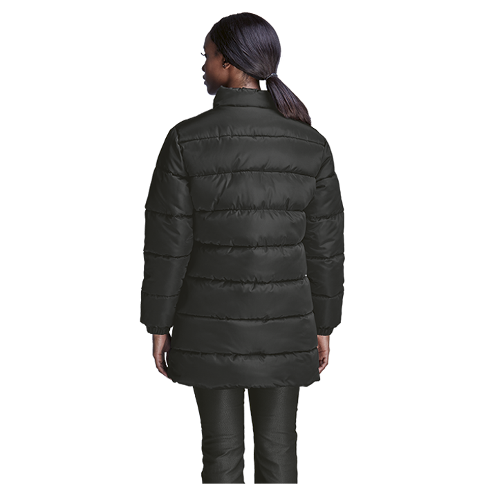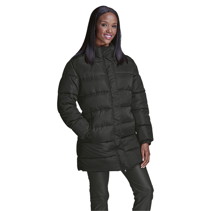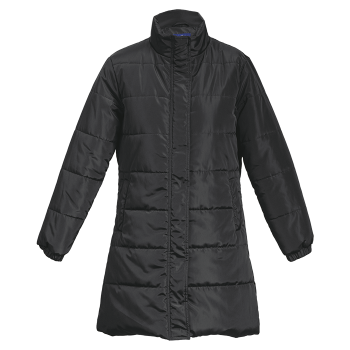 Longer Length Puffer Ladies Wrap up in Barron's Longer Length Puffer Ladies jacket—your winter warrior! With cozy hand-stuffed padding, a sleek funnel collar, and storm-proof zip, it’s warmth meets style. Fully quilted and lined for ultimate comfort, this medium-weight polyester marvel keeps chills at bay while you conquer the cold boldly! • Funnel collar • Elasticated sleeve cuffs • Storm flap with concealed zip and snaps • Front welt pocket • Fully lined and fully quilted • 100% Polyester outer with hand stuffed padding