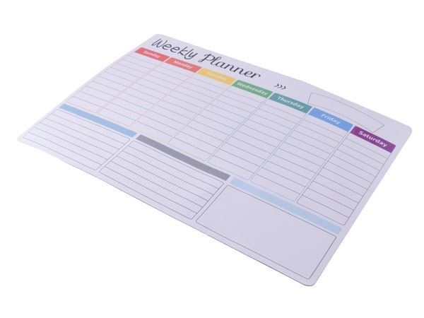 Magnetic Weekly Planner & Dry Erase Marker Organise your time with clarity and style using the Weekly Planner, the perfect tool to capture all your appointments, goals, and to-dos in one sleek, easy-to-view layout. With a strong, non-slip magnetic backing, which secures the planner to your fridge or other metal surfaces. With colour coded days, and a marker that is easy to dry & erase Colour(s):White Material:Magnetic Board Size:42 (l) x 30 (w) Packaging:Cellophane Packet