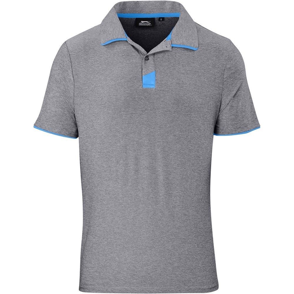 CODE: SLAZ-11416 Mens Cypress Golf Shirt 170g/m² 93% polyester, 7% spandex moisture-wicking and anti-bacterial finish melange design with solid contrast diagonal placket detail back buggy sleeve and collar piping self-fabric collar two-button placket reflective Slazenger logo on the back buggy Easy Care: Ideal for everyday wear. Requires low maintenance & is easy to clean & crease resistant. Cool fit: Allows air to pass through easily. Aids in moisture management, reduces sweat & keeps you cool. Anti-bacterial: This garment is treated to control bacteria, prevent odours and maintain freshness. Stretch: This fabric is designed with stretch properties which provide a more comfortable fit.