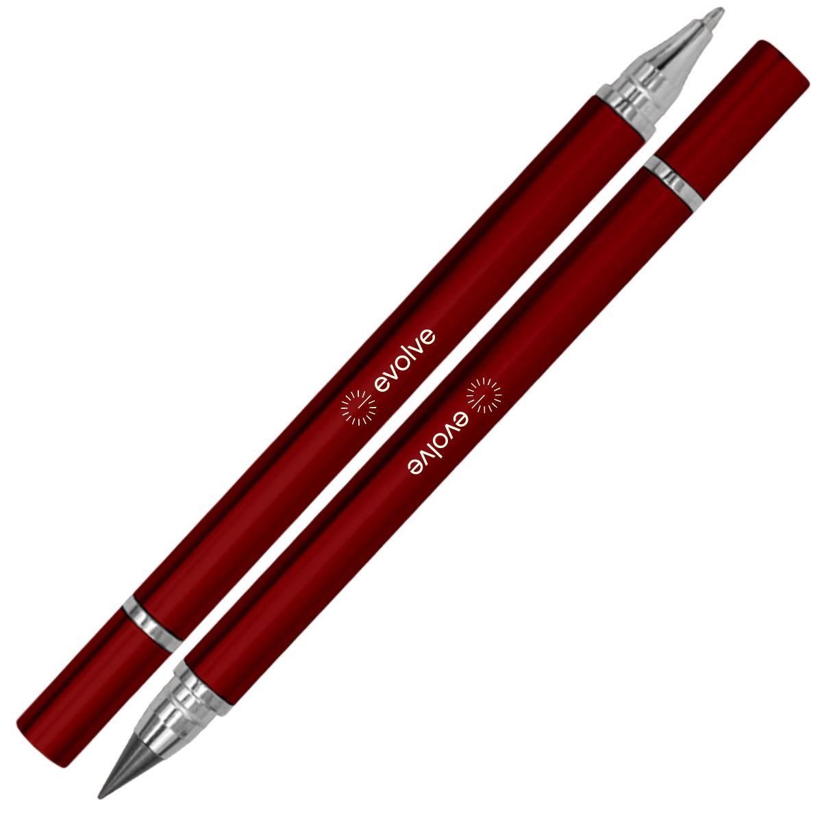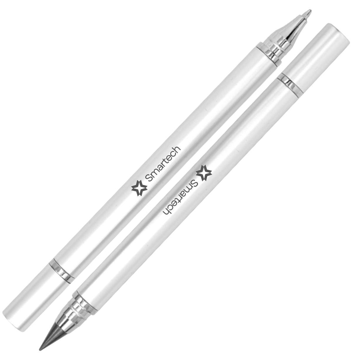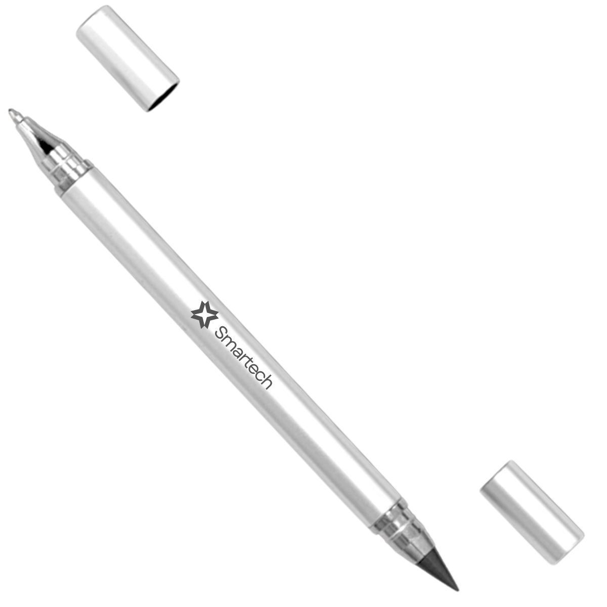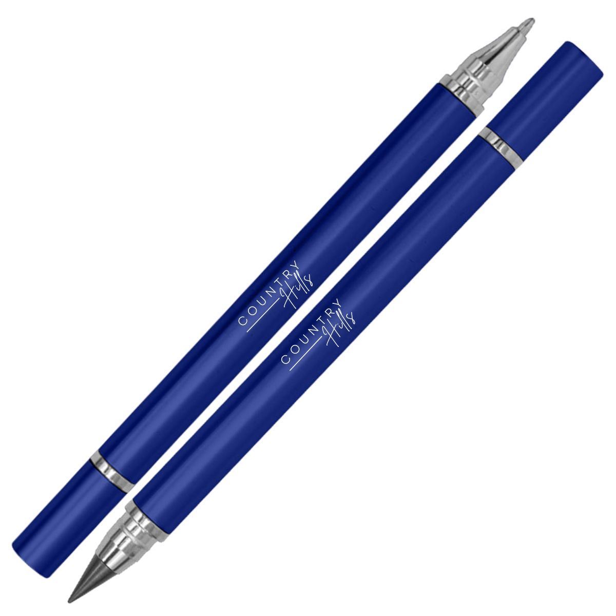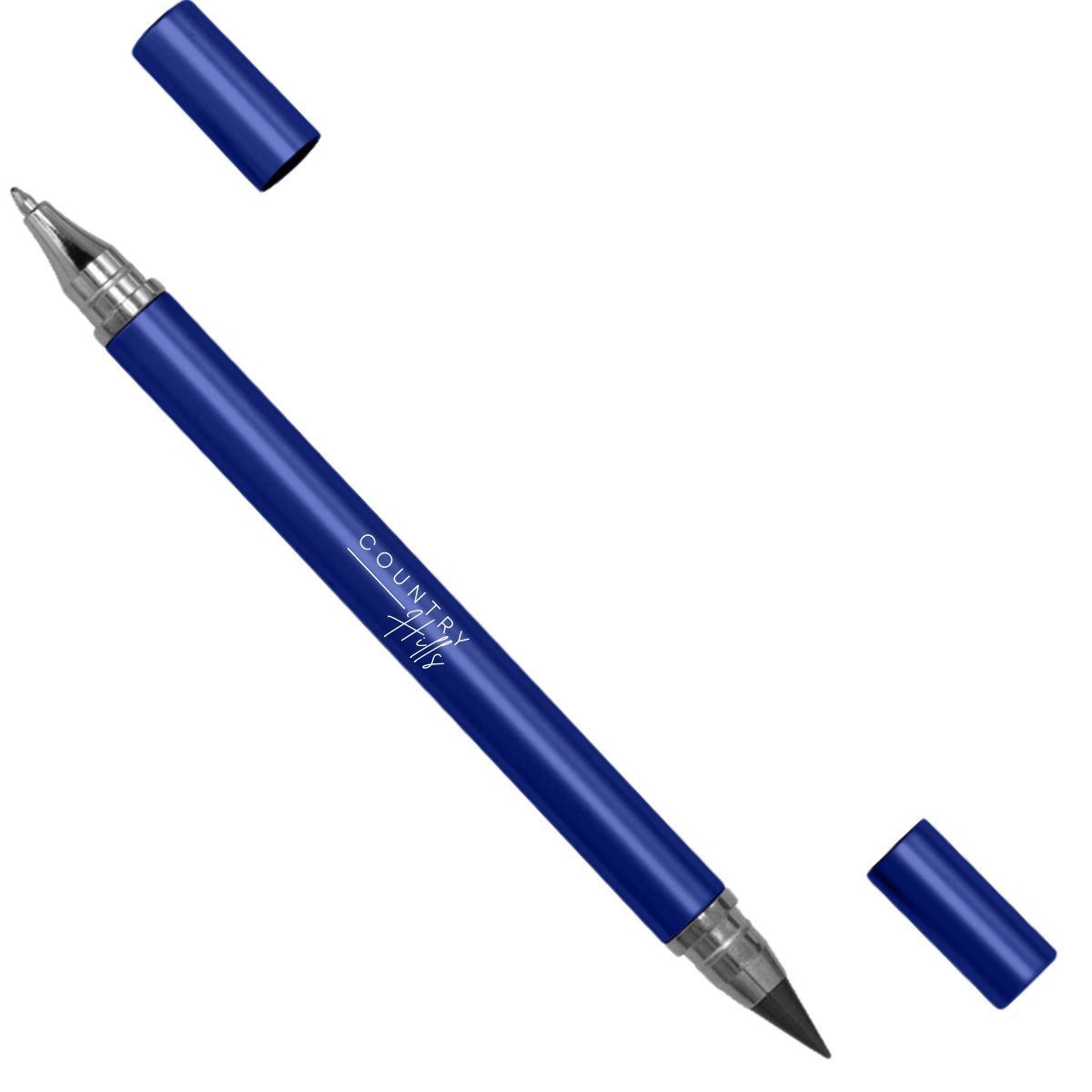 Metallic Pen & Eternal Pencil Code: PEN25205 The Metallic Pen & Eternal Pencil is a sleek, dual-purpose writing instrument designed for versatility and convenience. Crafted from durable ABS plastic, it features a smooth matte black finish with two silver tips—each protected by matching matte black caps for a cohesive, modern look. One end houses a traditional ballpoint pen, while the other features an eternal pencil with a durable ceramic tip that never needs sharpening. This stylish, space-saving tool is perfect for professionals, creatives, and anyone who values function with a minimalist edge. Specifications ABS Plastic Product Size: 13.8 (H) x 1 (W)