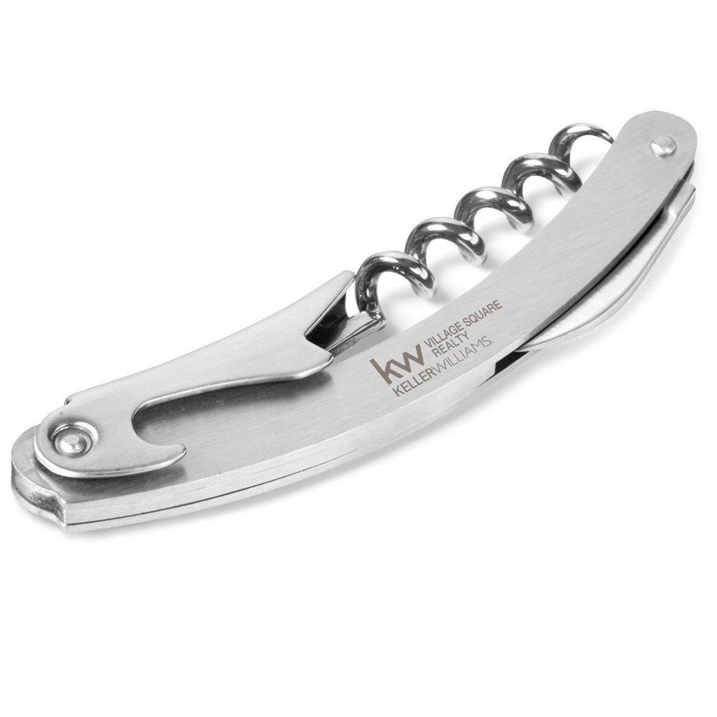 Newport Waiter's Corkscrew This compact wine tool is designed to make the uncorking process quick and easy, and it can be branded with your logo or message. 11 ( l ) x 2 ( w ) stainless steel