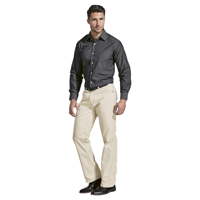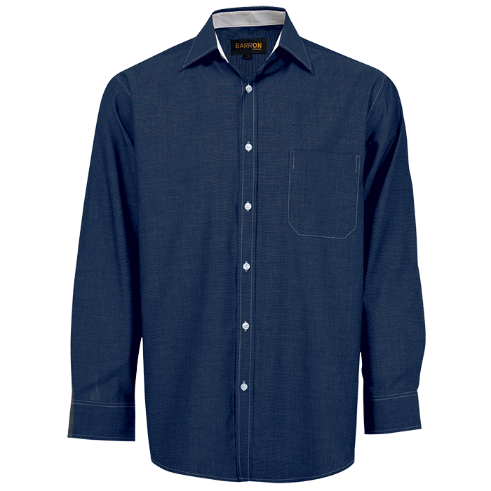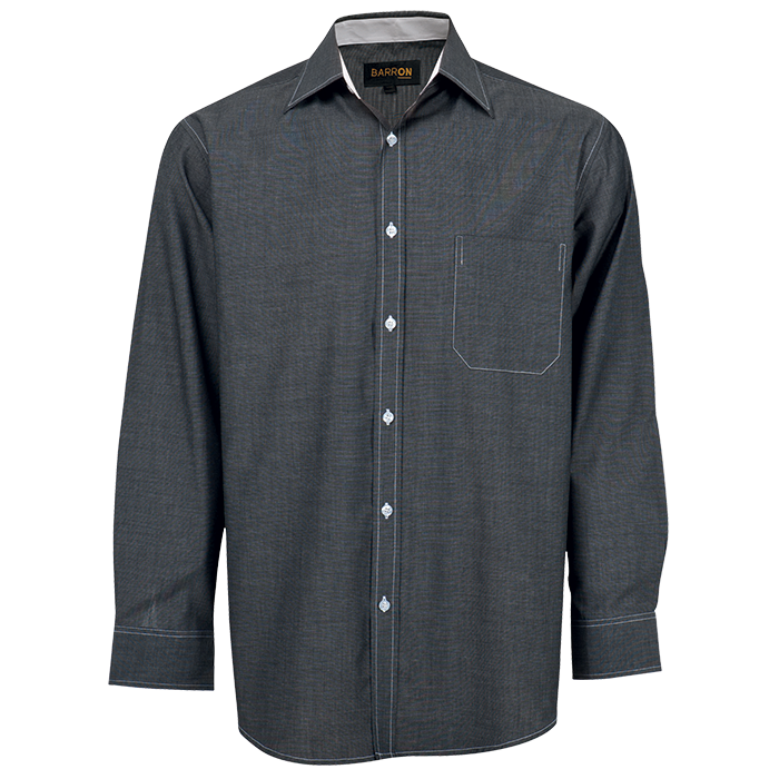 Onyx Lounge Long Sleeve Mens Meet the Onyx Lounge Long Sleeve by Barron—where sharp style meets all-day comfort! With its melange poly-cotton blend, raised collar, and contrast details, this shirt turns heads at the office and beyond. Elevate your look effortlessly with innovative design and premium quality! • Raised collar • Available in long and short sleeves • Double back yoke and chest pocket • Button-through gauntlet and double button cutaway cuffs on the long sleeve option • Contrast inner collar and cuffs • Curved hem • Innovative styling • Contrast top-stitching throughout • 65/35 Poly Cotton melange weave fabric • Contrast marble buttons • SMETA • OEKO-TEX