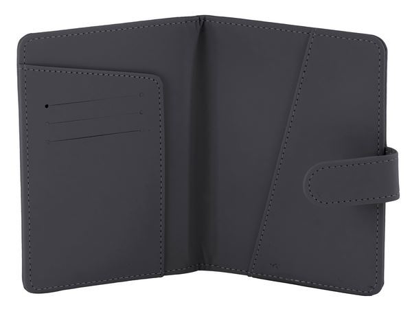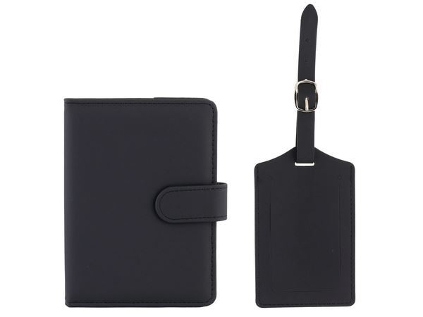 2-in-1 travel set includes a matching passport holder and luggage tag. Snap-closure design for easy access and peace of mind. With 3 inner ID slots and 2 inner pouches. Adjustable luggage tag with buckle fastening and ID window.