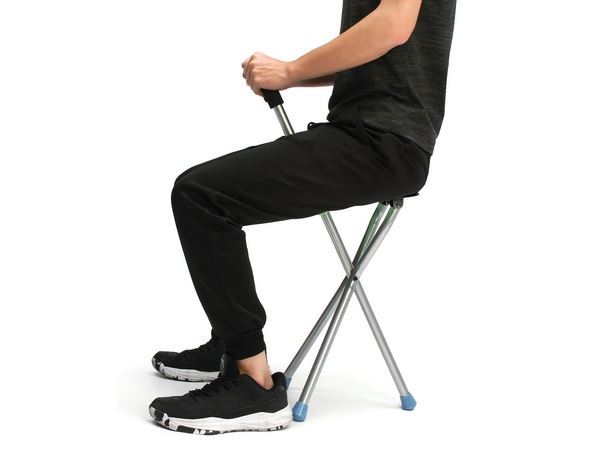 This lightweight chair doubles as a walking cane and a sturdy seat for sporting events or while waiting in queues etc. Compact and foldable, it measures just 86cm high when stored, making it easy to carry anywhere. Unfold it for a comfortable seat facing towards the handle. With a weight capacity of up to 90 kg.