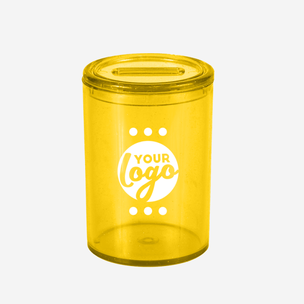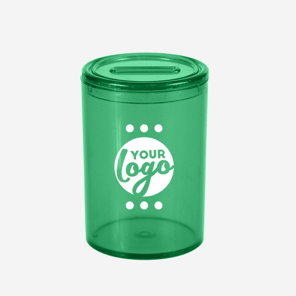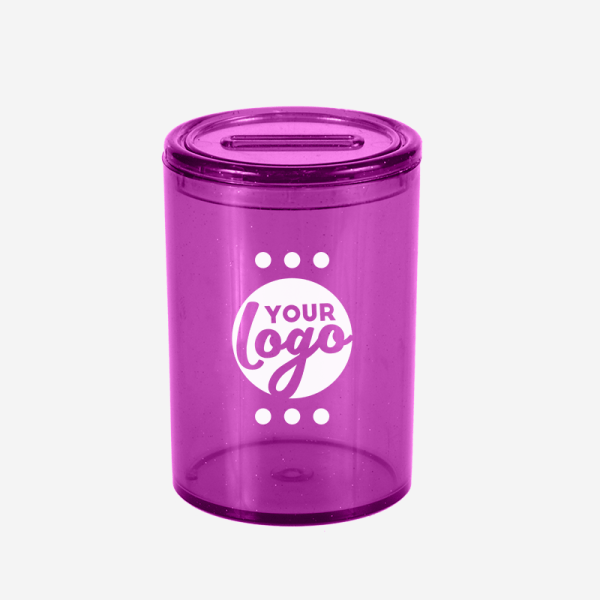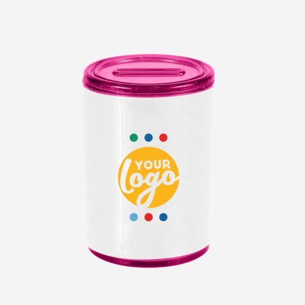 This is our most popular shaped money box. This plastic round money box comes in both clear and solid options, pantone matching is also available for large quantities. This product looks great with a wrap print or a full colour wrap sticker.