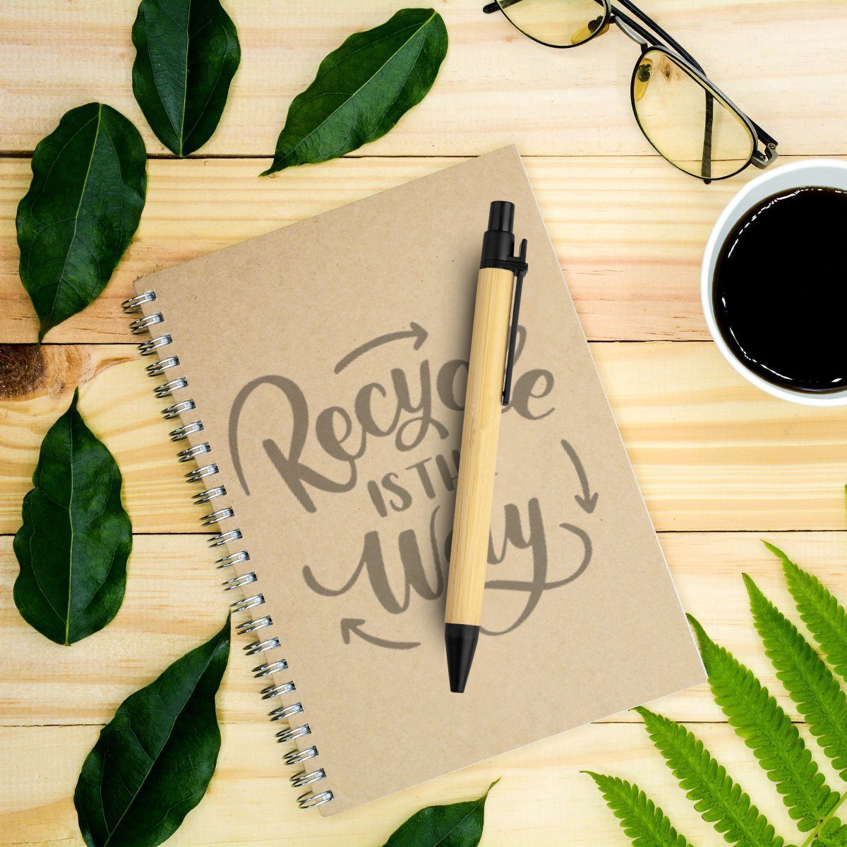 The Selva Ballpoint Pen is manufactured from bamboo and wheat straw. This sleek pen boasts a vibrant and colourful plastic clicker and clip, an eco-friendly bamboo and wheat straw barrel and a plastic tip. Designed with versatility in mind, it writes effortlessly with smooth black ink.