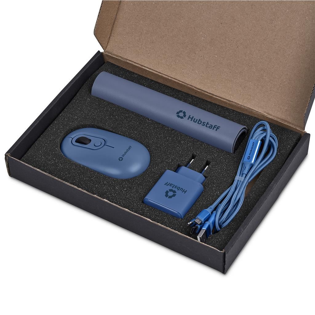 A combination of synergistic tech accessories is impressively packaged in a presentation box.