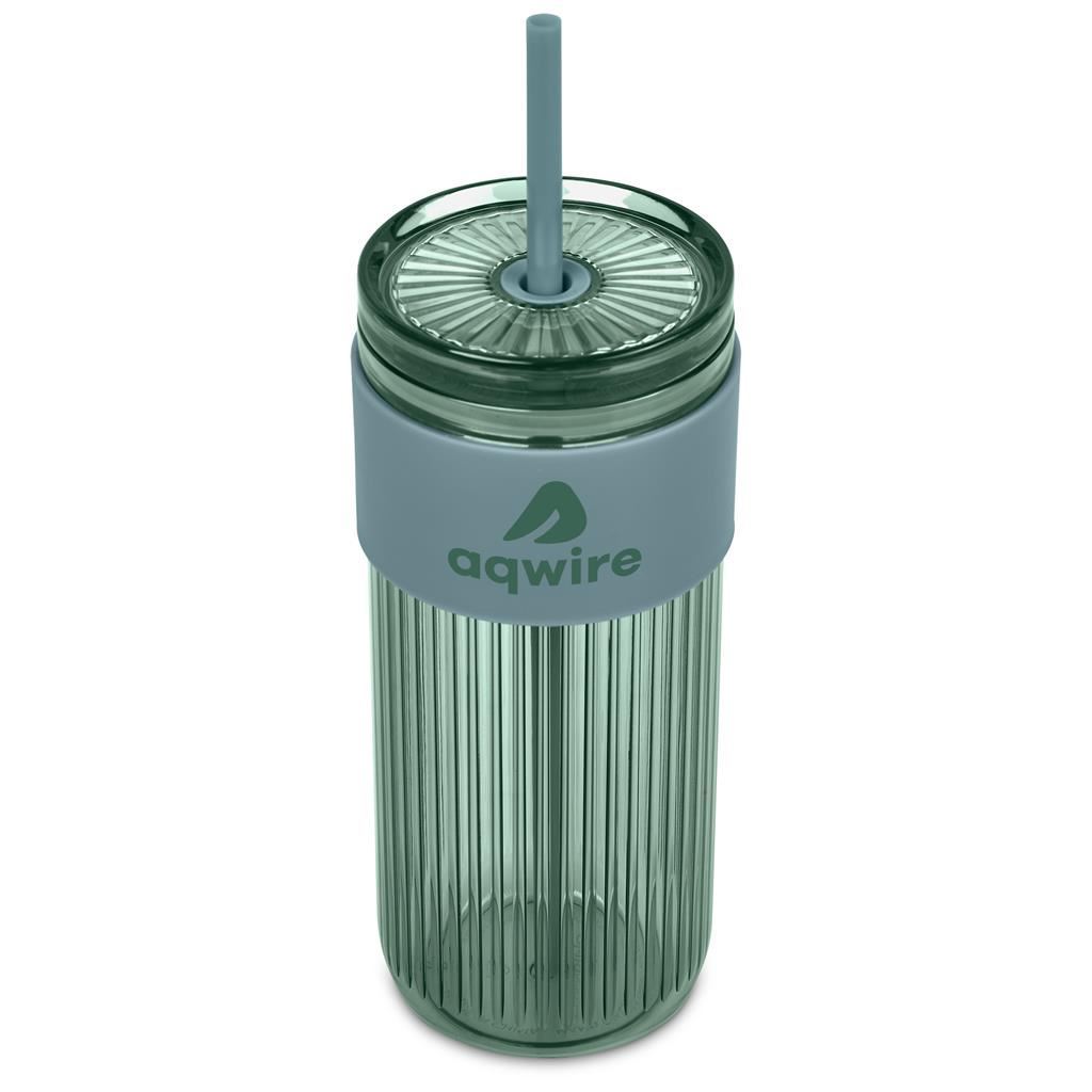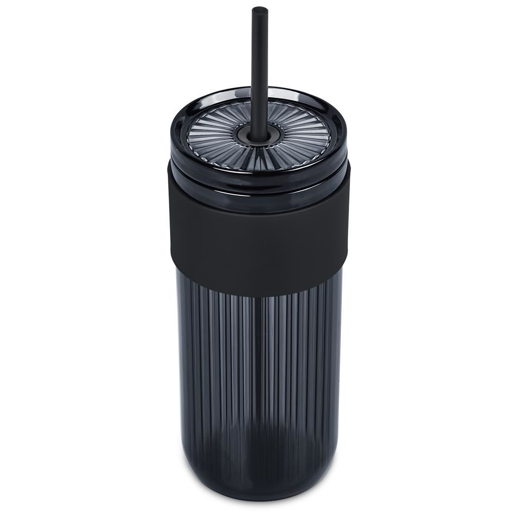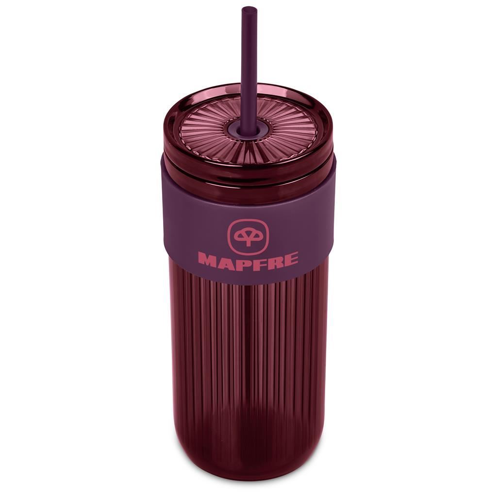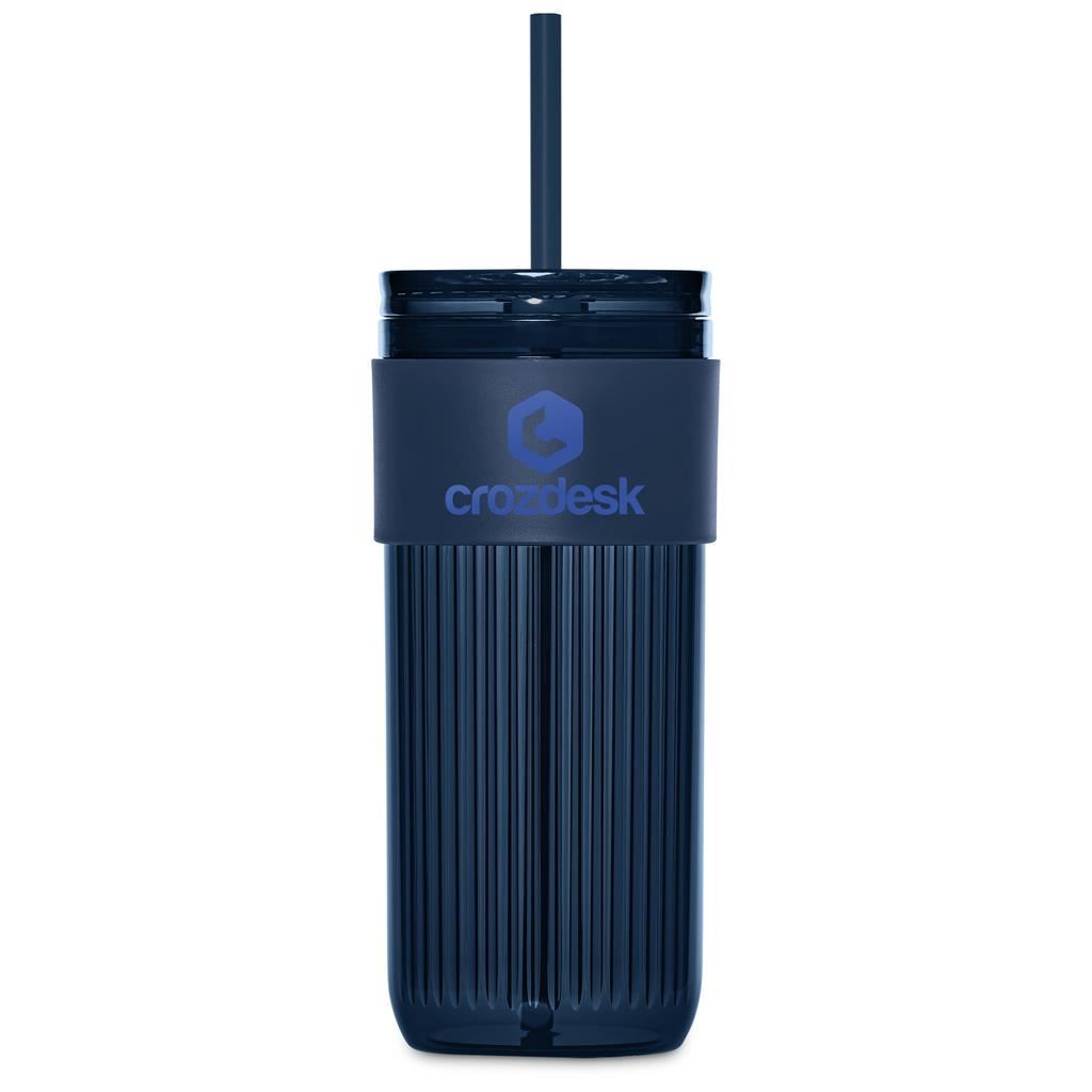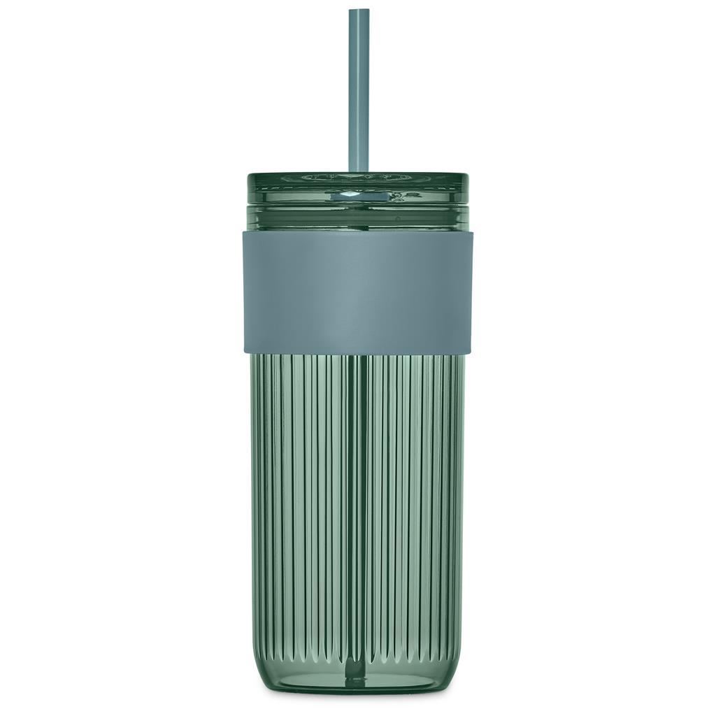 The ribbed pattern of this fashionable BPA-free plastic tumbler makes it feel both modern and timeless. The ribbing is on the inside of the tumbler, allowing for branding of your logo or message on the smooth outer surface. It features a secure press-on lid and a matching straw.