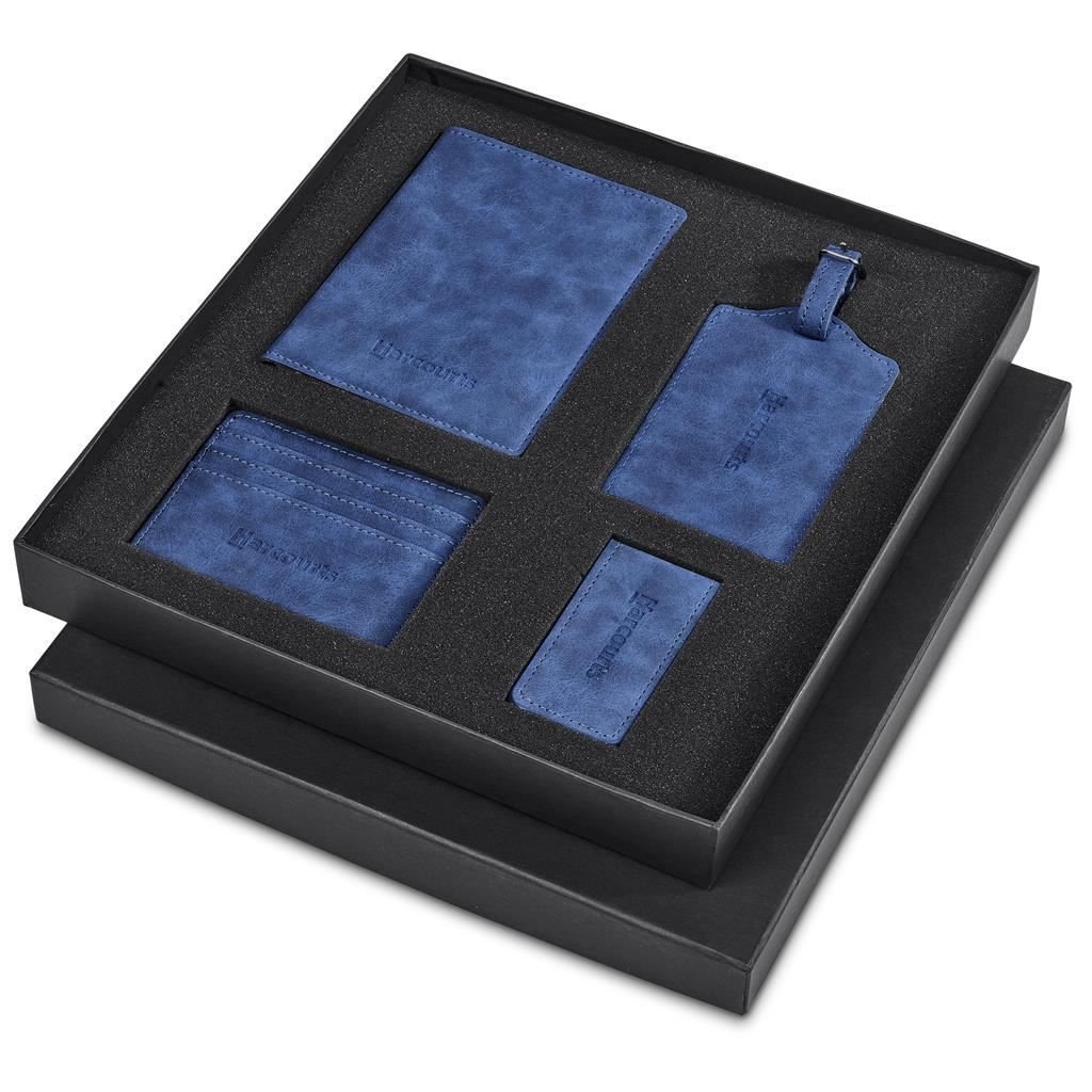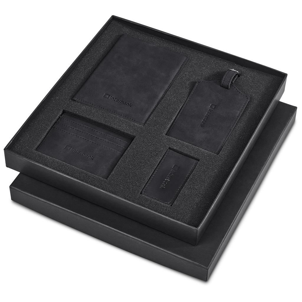 Serendipio Tourist Travel Set This travel set includes a passport holder, luggage tag, card holder, and money clip, elegantly presented together in a black two-piece gift box. Each item is securely held in place by a custom sponge tray, ensuring a stylish and organised presentation. The 4 items are designed for debossing branding with the same logo of the same size on each item, to save on producing multiple dies. 28.7 ( l ) x 26.5 ( w ) x 3.5 ( h ) cm brushed PU passport holder, luggage tag, card holder, money clip card holder fits three credit cards luggage tag for the following information: name, contact number, email address Serendipio logo on front of box packaged in a black two-piece presentation box