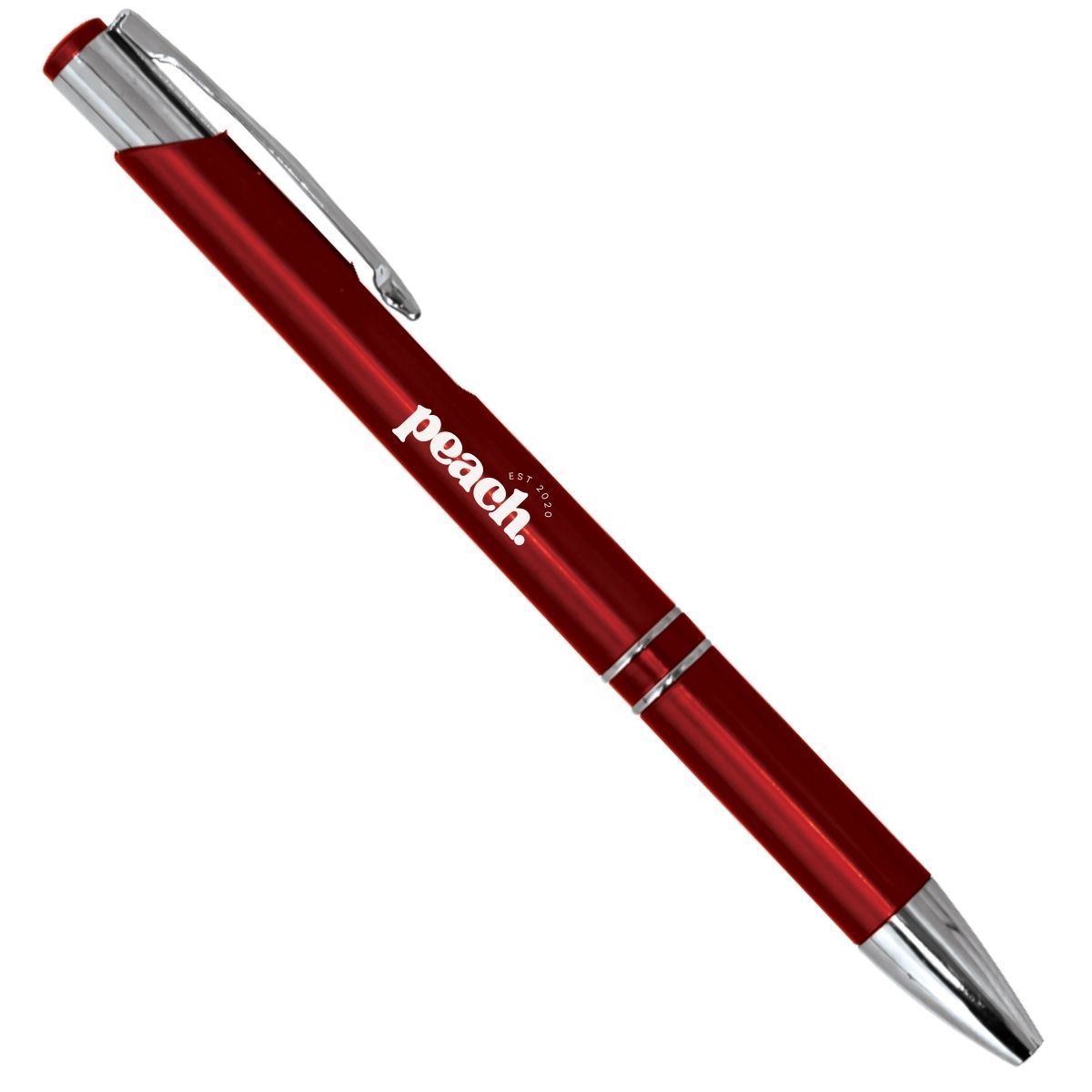 The Souvenir Ballpoint Pen is a stylish and compact writing instrument that combines functionality with a touch of elegance. Manufactured using plastic, this pen offers a plastic barrel as well as a metal tip and back with black German Ink. It is designed to be portable and versatile, making it a convenient choice for everyday use.