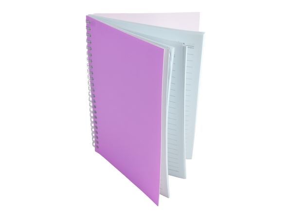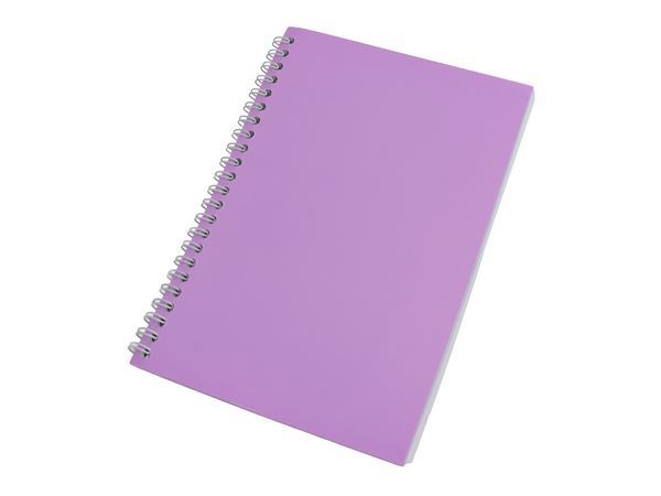 A5 notebook comes with 60 sheets (120 lined pages) of 70gsm paper. Has a coated paper cardboard cover that makes it quite flexible and the inner pages are bound together with the side ringbinders, making it easy to tear out the pages