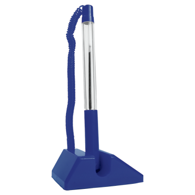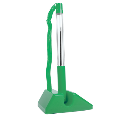 Standing Desk Pen Plastic colour base with adhesive underneath Clear body Extending spring cable attachment Matching colour trims Excludes Branding