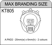 Stopwatch Timer Colour(s):Black Material:Plastic Size:7.5 (l) x 6.5 (w) x 1.5 (d) Additional Info: Includes: Time, Date, Alarm and Stopwatch Packaging:Gift Box Excludes Branding