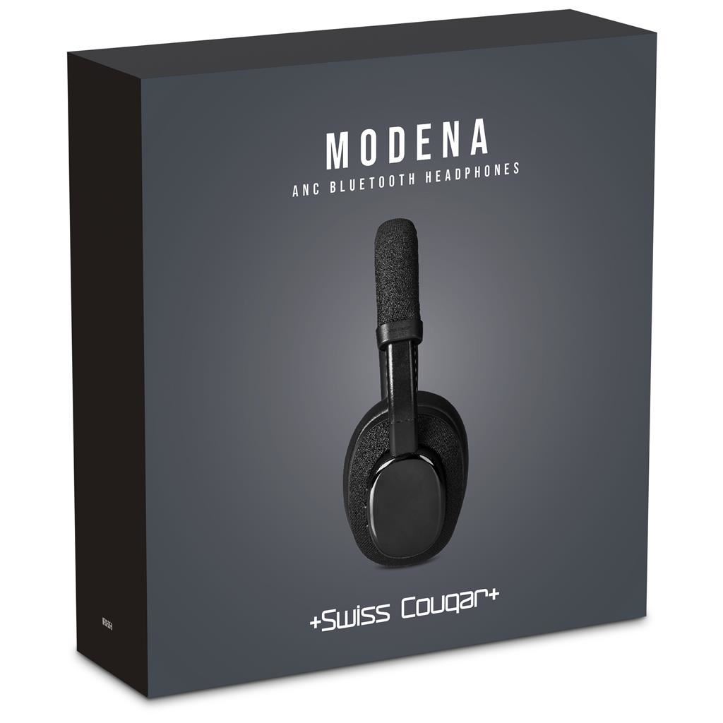 Swiss Cougar Modena Active Noise-Cancelling Bluetooth Headphones Experience your music with immersive clarity and comfort with the Swiss Cougar Modena ANC Bluetooth Headphones. Designed with advanced active noise control technology, these headphones reduce unwanted background sound so you can enjoy your audio with greater focus and depth. Whether you are working, travelling, or relaxing, the Modena delivers rich sound quality and a smooth listening experience. The comfortable over-ear design and long play time ensure extended enjoyment throughout your day. With simple connectivity, practical features, and modern styling, these headphones bring together performance, convenience, and everyday versatility. 20 ( l ) x 20 ( w ) x 8.5 ( h ) cm ABS and fabric adjustable arms soft cushion headband soft and comfortable ear cushions Bluetooth version 5.3 JL7006F up to 21db noise-cancelling normal mode and ANC mode battery: 350mAh playback time: approximately 20 hours in normal mode; 15 hours in ANC mode frequency response: 20Hz – 20KHz Swiss Cougar logo tone-on-tone on the sides of the headphones packaged in a Swiss Cougar gift box