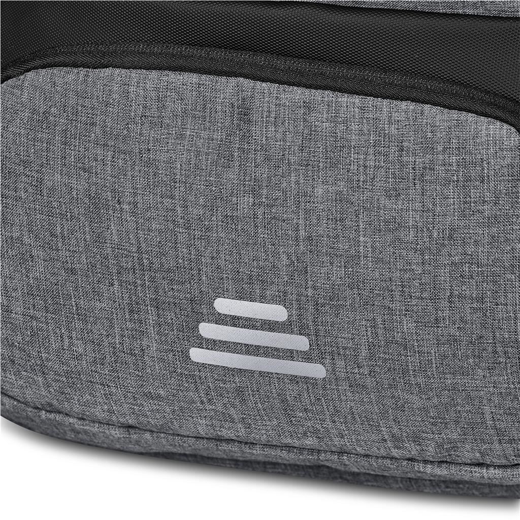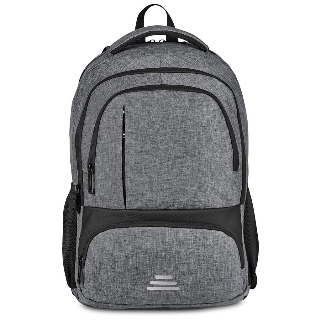 Swiss Cougar Turin Laptop Backpack Stay organized and travel in comfort with this versatile backpack, designed for both work and travel. Featuring reflective detailing on the front panel for enhanced visibility, the bag offers two spacious compartments and a concealed zip pocket on the front for secure storage of essentials. The moulded compact foam back panel is designed to provide enhanced comfort, even when carrying heavier loads. 38 ( l ) x 13 ( w ) x 46 ( h ) cm two-tone 600D, 900D 24L Features include: reflective detail on front panel moulded compact foam padded back panel with extra comfort and durability two compartments three front zip pockets padded laptop compartment, fits 15.6-inch laptop padded adjustable shoulder straps with air tech mesh lining for super absorption luggage strap to slip over trolley handle two side mesh pockets Swiss Cougar branding on luggage strap, Swiss Cougar lining, and swing tag bulk packed