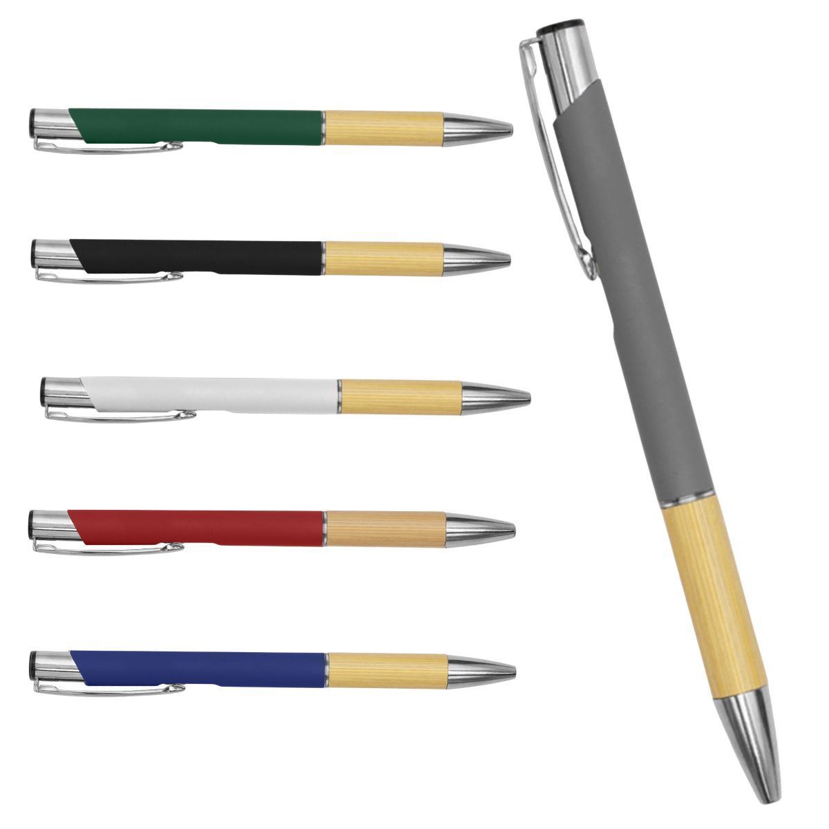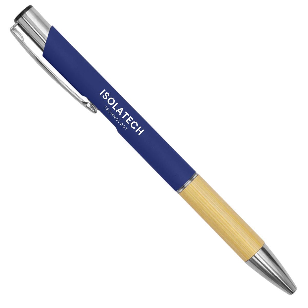 The Tallin Recycled Bamboo Pen seamlessly blends eco-conscious design with contemporary style. Crafted from recycled aluminium, it features a sleek matte black lacquered barrel paired with a refined bamboo front grip for added comfort and a natural feel. A shiny stainless steel tip and a dual-function clicker—made from a combination of stainless steel and plastic—add both elegance and practicality.