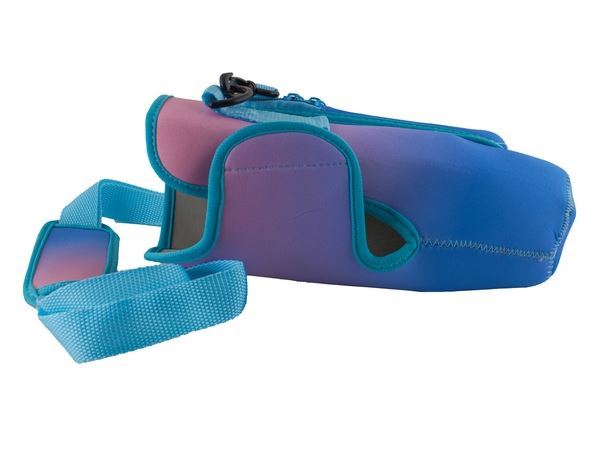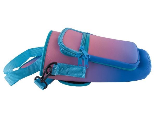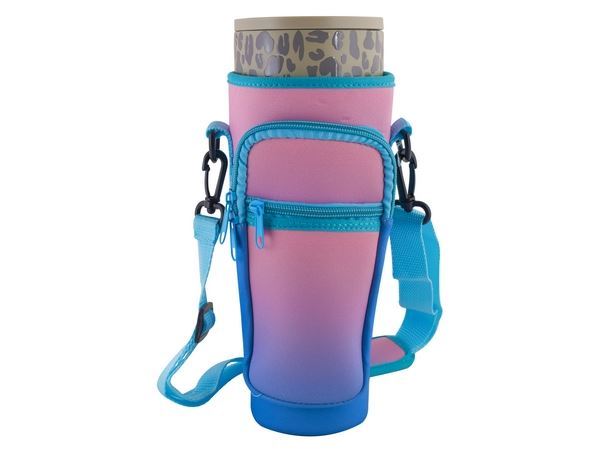 Tumbler Carrier Pouch Ideal to fit 1200ml (40oz) Tumblers. Designed with two front zip pockets that provide plenty of room for all your personal belongings such as smartphones, cash, cards, keys etc. The padded pouch protects your cup from collisions and scratches. Comes with a removable and adjustable padded shoulder strap. Colour(s):Pink-Blue Material:SBR (Styrene-Butadiene Rubber) Size:11 (w) x 17 (h) x 6.5 (d) Packaging:Cellophane Packet
