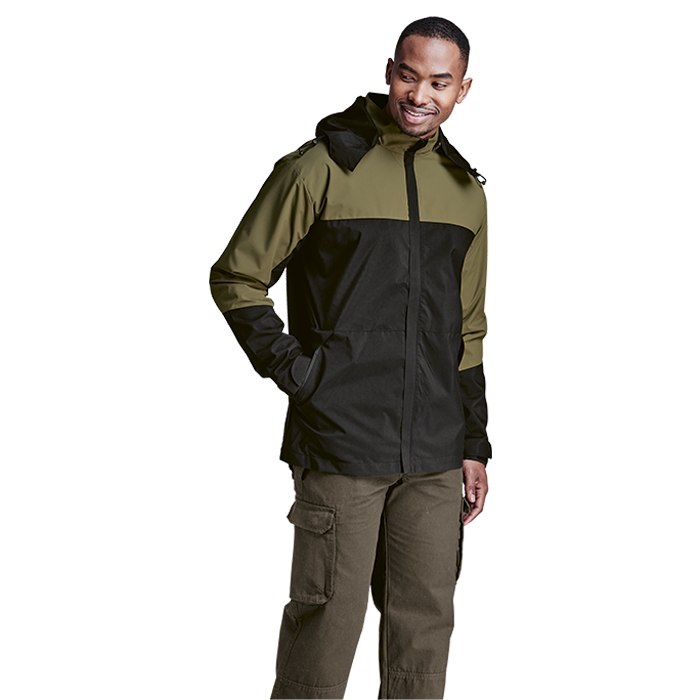 Water Resistant Rain Jacket Mens Stay dry and stylish all year round with this lightweight men's rain jacket, featuring a water-resistant polyester shell, zip-off hood, and coated inverted zips for ultimate protection. Its breathable mesh lining and adjustable hood make it perfect for casual adventures in any weather • Funnel collar with zip-off hood • Long Sleeve • Coated Inverted Nylon Zips and centre zip & pocket zips • Cut-‘n-sew panels • Water Resistant • Elasticated draw cord on hood with plastic toggles • Body Lining 100% Polyester Mesh • Sleeve Lining:100% Polyester 210T • Shell: 100% Polyester 150D
