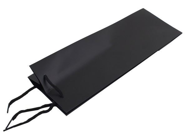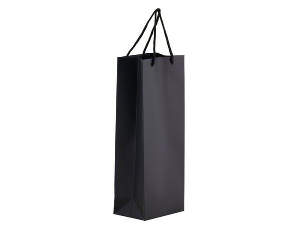 Wine Gift Bag The elegant gift bag is perfect for presenting wine, champagne, or other bottled gifts. It fits most standard-sized bottles comfortably and the sleek design adds a touch of sophistication to any occasion, whether it?s a birthday, wedding, or holiday celebration.Colour(s): BlackMaterial: 210g/gsm Cardboard Size:12 (w) x 36 (h) x 9 (d)