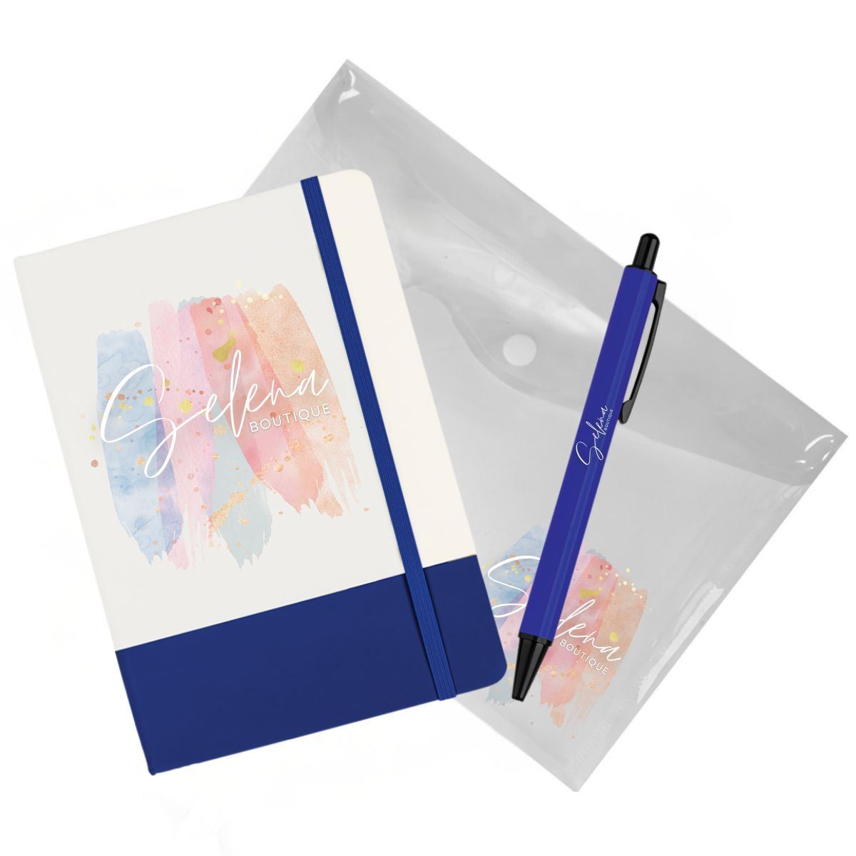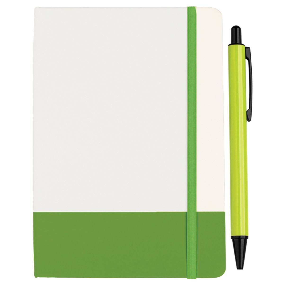 WriteWise Notebook & Pen Set Code: NBSET25511 WriteWise Notebook & Pen Set is designed to elevate your everyday writing with two essential items. RioColour Notebook: Crafted from high-quality PU with a vibrant coloured bottom. Features an elasticated closure, a bookmark string, and 80 lined pages of smooth paper. Vigo Ballpoint Pen: Made from a combination of premium metal and plastic. Includes a plastic clicker and clip, a metal barrel, and a plastic tip. Writes effortlessly with smooth black ink. Specifications PU, (Polyurethane Leather), Paper, 80 Lined Pages, Metal, Plastic