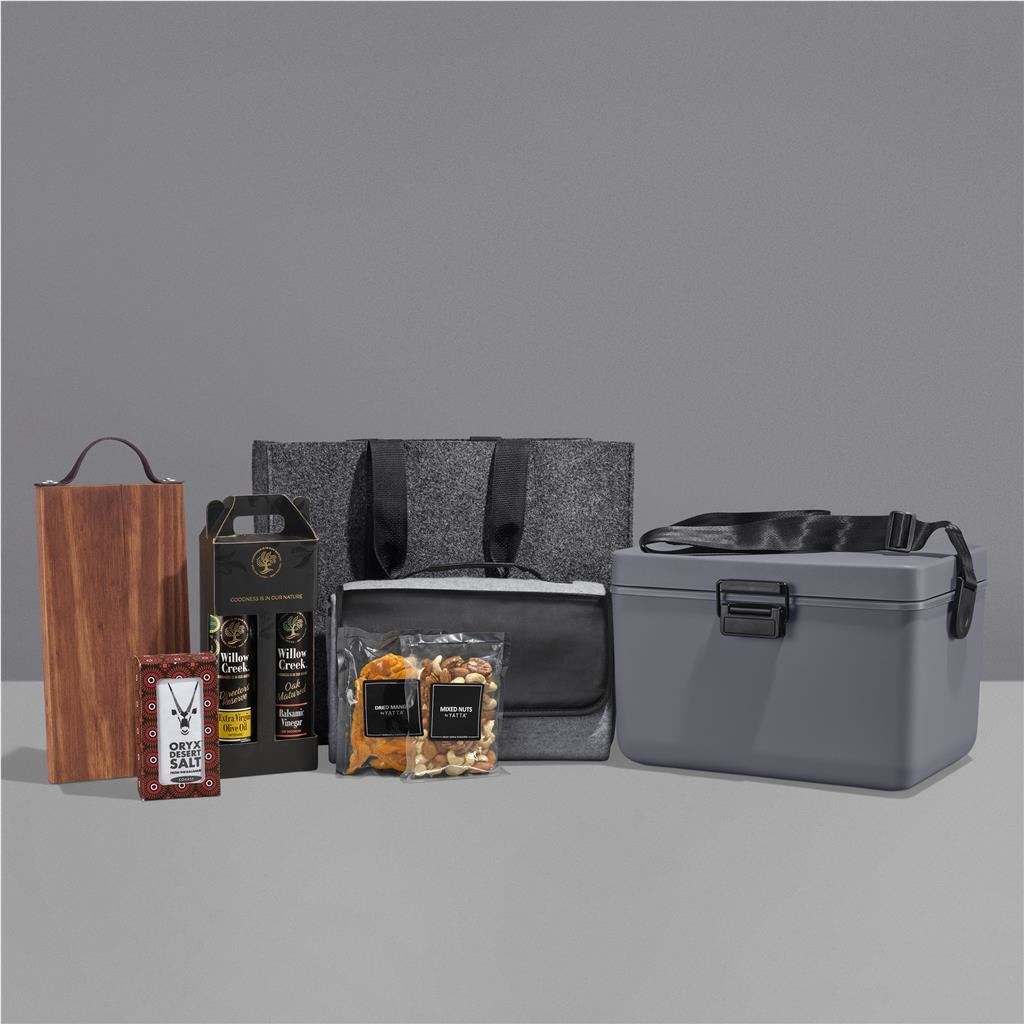 The Yatta range of hampers is expertly crafted to provide a delightful experience with a curated selection of premium items. Elegantly presented in a luxury 12L cooler box. This hamper is further encased in a large size durable Dark Grey RPET felt gift bag.