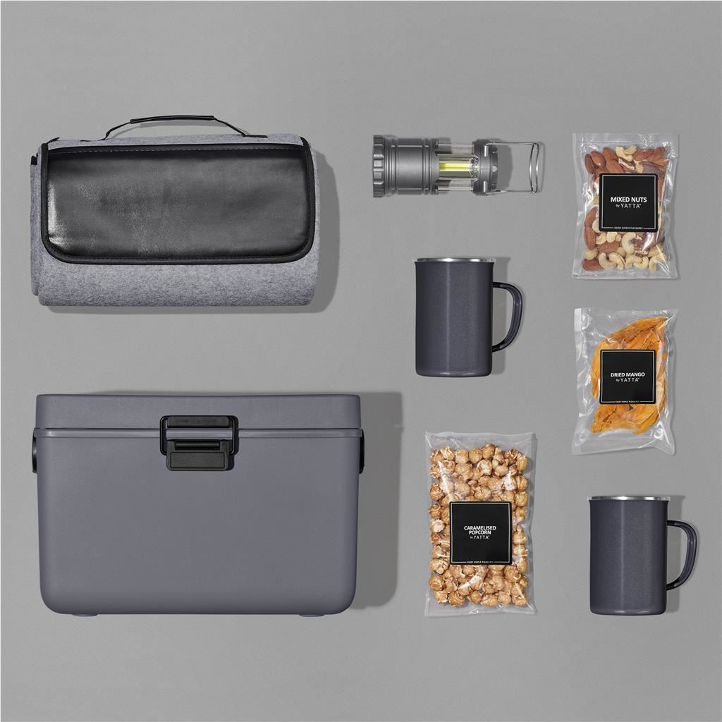 The Yatta range of hampers is expertly crafted to provide a delightful experience with a curated selection of premium items. Elegantly presented in a luxury 12L cooler box. This hamper is further encased in a large size durable Dark Grey RPET felt gift bag.