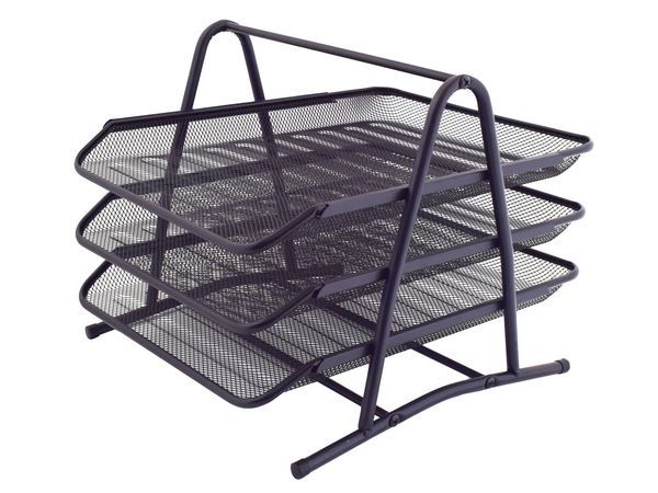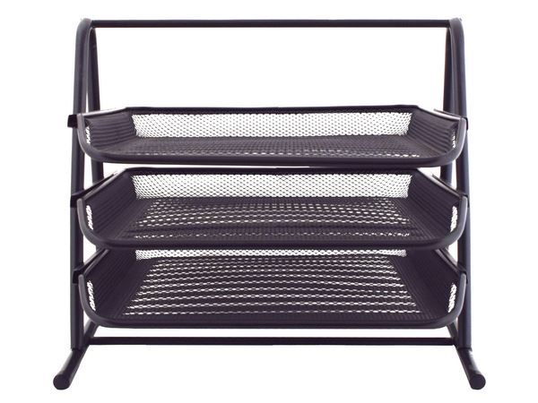 Organise your desk in style with this modern, space-saving 3-layer iron mesh file tray. The perfect solution for keeping your documents neat and accessible.
