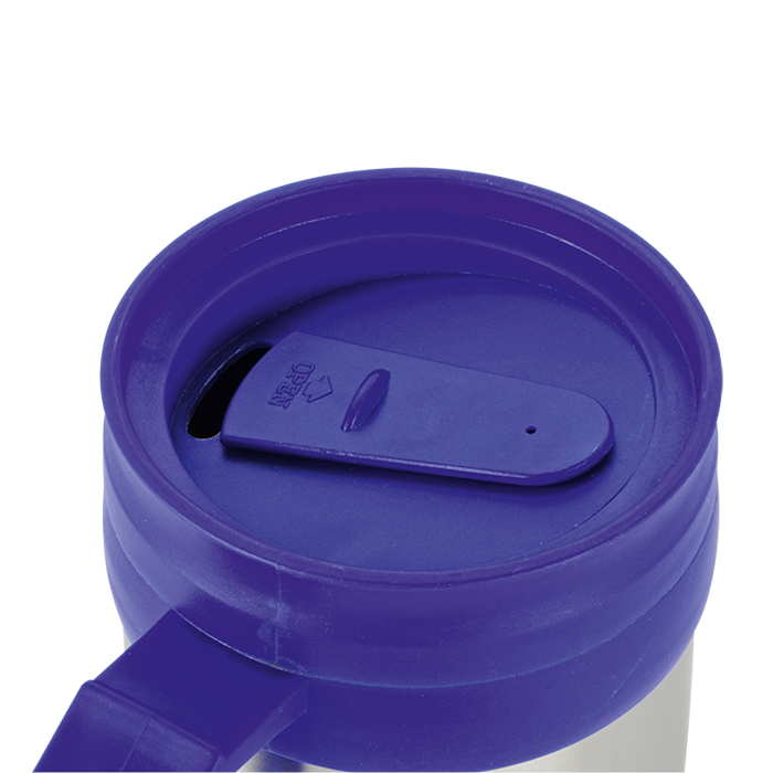 450ml Travel Mug Features Stainless Steel Black Plastic Base Insulated Double Wall Body Comfortable Grip Plastic Handle Easy Sip Lid 450ml Capacity Excludes Branding