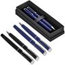 The Alex Varga collection features writing instruments with distinctive yet tasteful designs, and high quality refills and mechanisms. Each piece or set is presented in elegant packaging, making them gifts which are given with pride and confidence. The pens in this set combine a linear, groove patterned lower barrel with a smooth, matte upper barrel. The upper barrel and the lid have a shiny, chrome underlay, so that a lasered logo will come through to match the silver trims of the pens. The ball pen is fitted with a refill which has a minimum writing distance of 3,000 Metres. Replacement refills are available (code AV-19029). The rollerball is fitted with a free-flowing rollerball refill which has a minimum writing distance of 800 Metres. A spare rollerball refill is provided with this set. Replacement refills are available (code AV-19009)