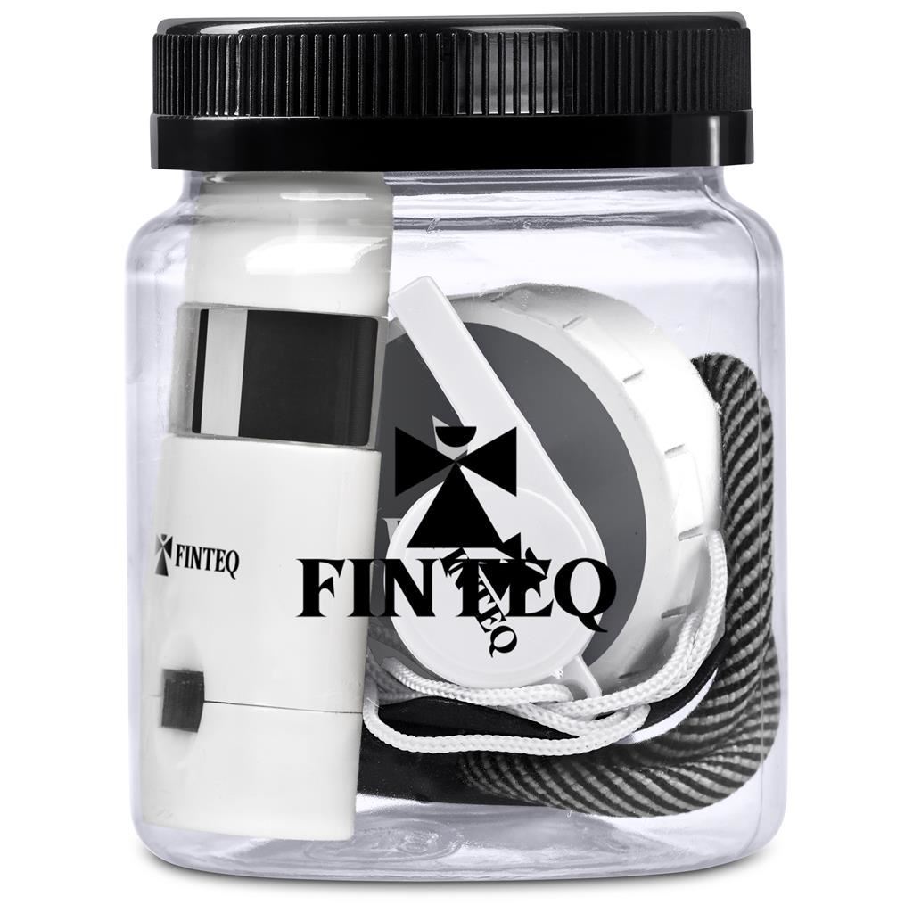 A compact, ready-to-gift jar set, filled with a mix of small promotional products. These jars are ideal for desk drops, giveaways, and creating small but memorable brand experiences.