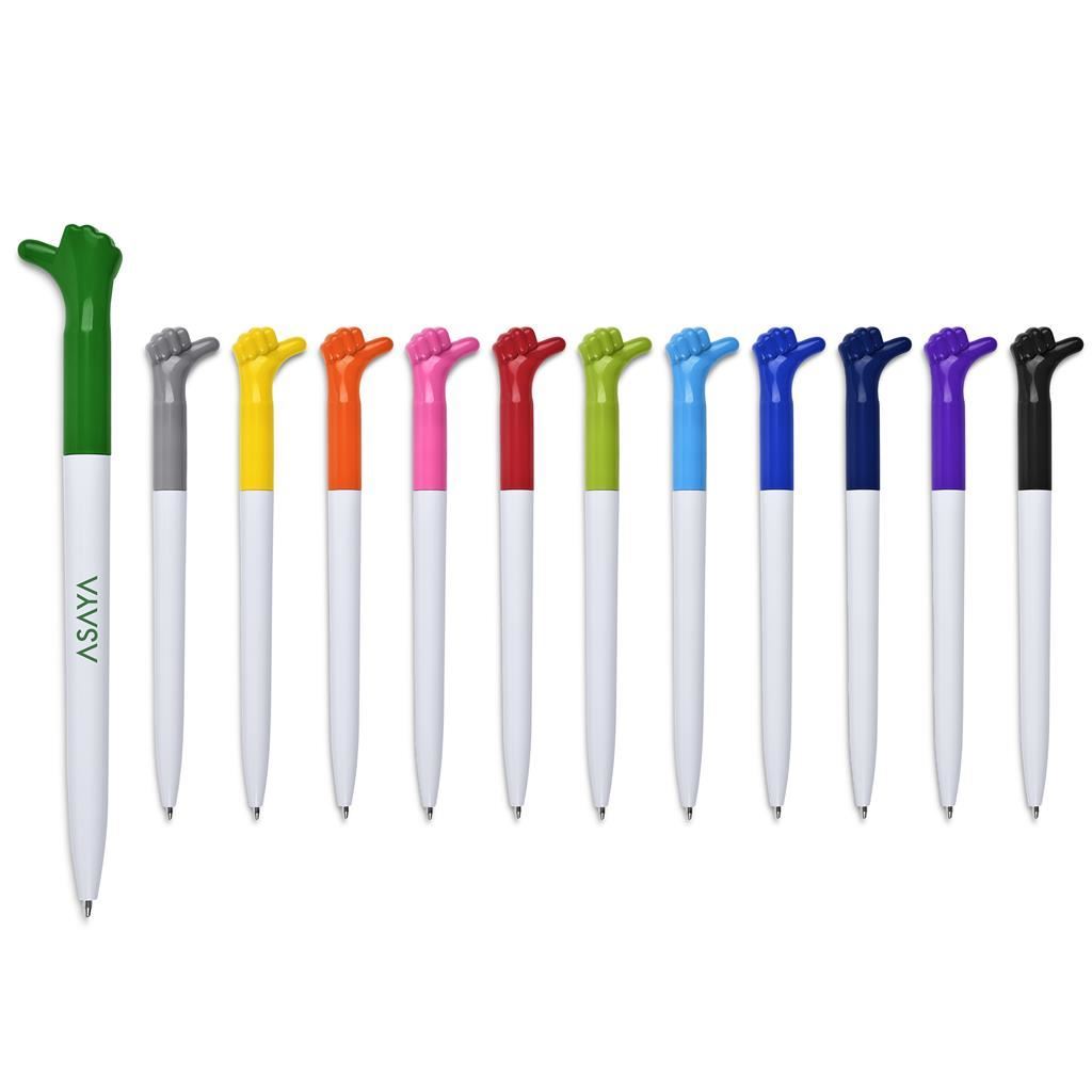 CODE: WI-AL-317-B Altitude Bravo Ball Pen A fun and budget-friendly plastic pen designed to make a positive impression. Featuring a distinctive thumbs-up detail, it’s perfect for reinforcing uplifting brand messages and creating a memorable giveaway. Ideal for events, campaigns, and everyday use, this pen combines practicality with a playful design. It can be branded with your logo, offering a cost-effective way to keep your brand visible while spreading a feel-good message. 14 ( l ) cm ABS plastic twist action black German ink bulk packed